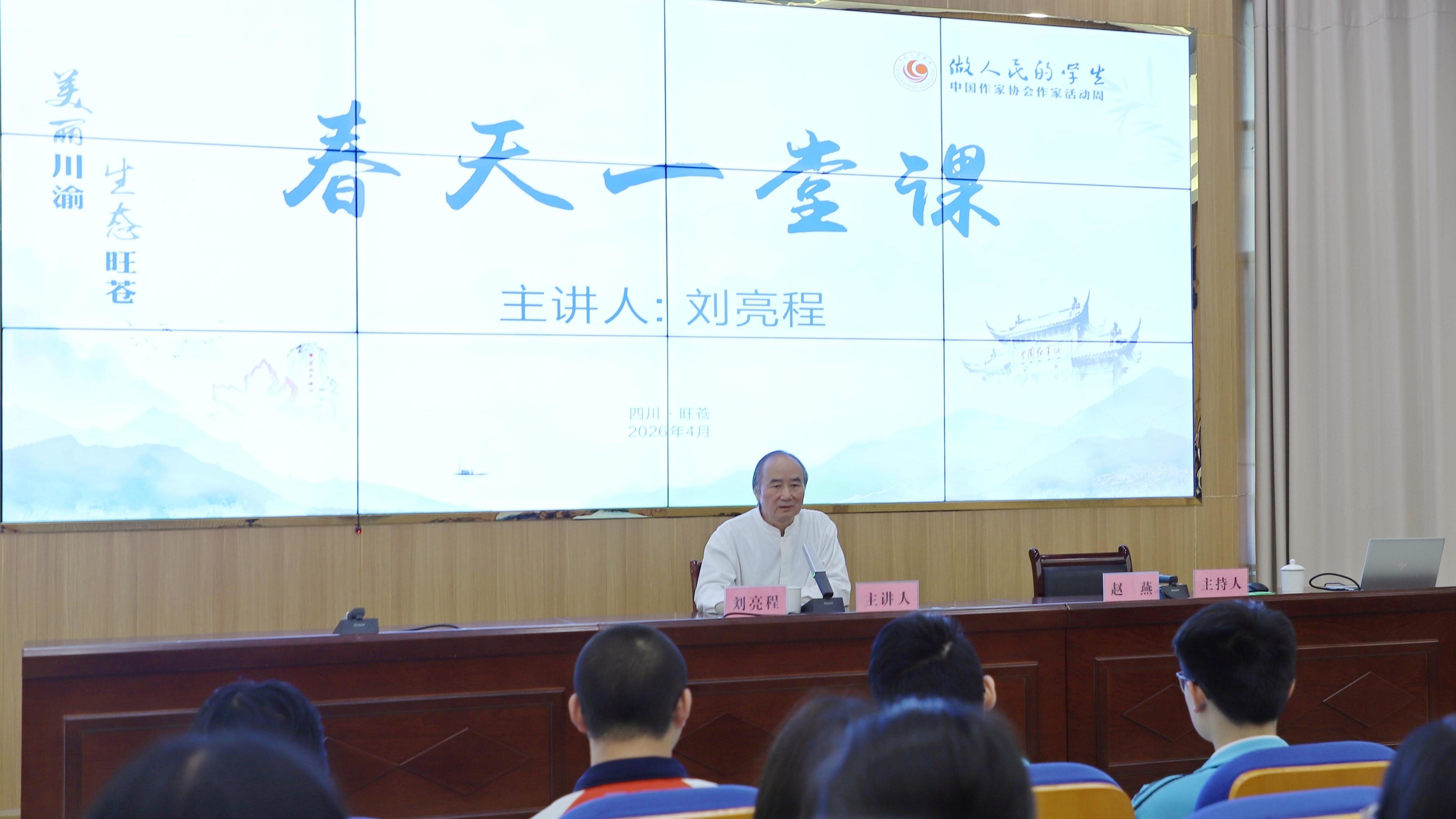 4月14日至17日,刘亮程在广元旺苍中学为师生带来主题为‘春天一堂课’的公益讲座,分享了对家乡、自然与写作的理解。他强调文学源于日常,文字可以守护自然,而真实的生命体验才是文学打动人的关键。活动周还开展了名刊编辑现场改稿会、生态文学采风和红色文化调研等活动,多位作家与基层文学爱好者交流,推动文学在基层的发展。【详细】