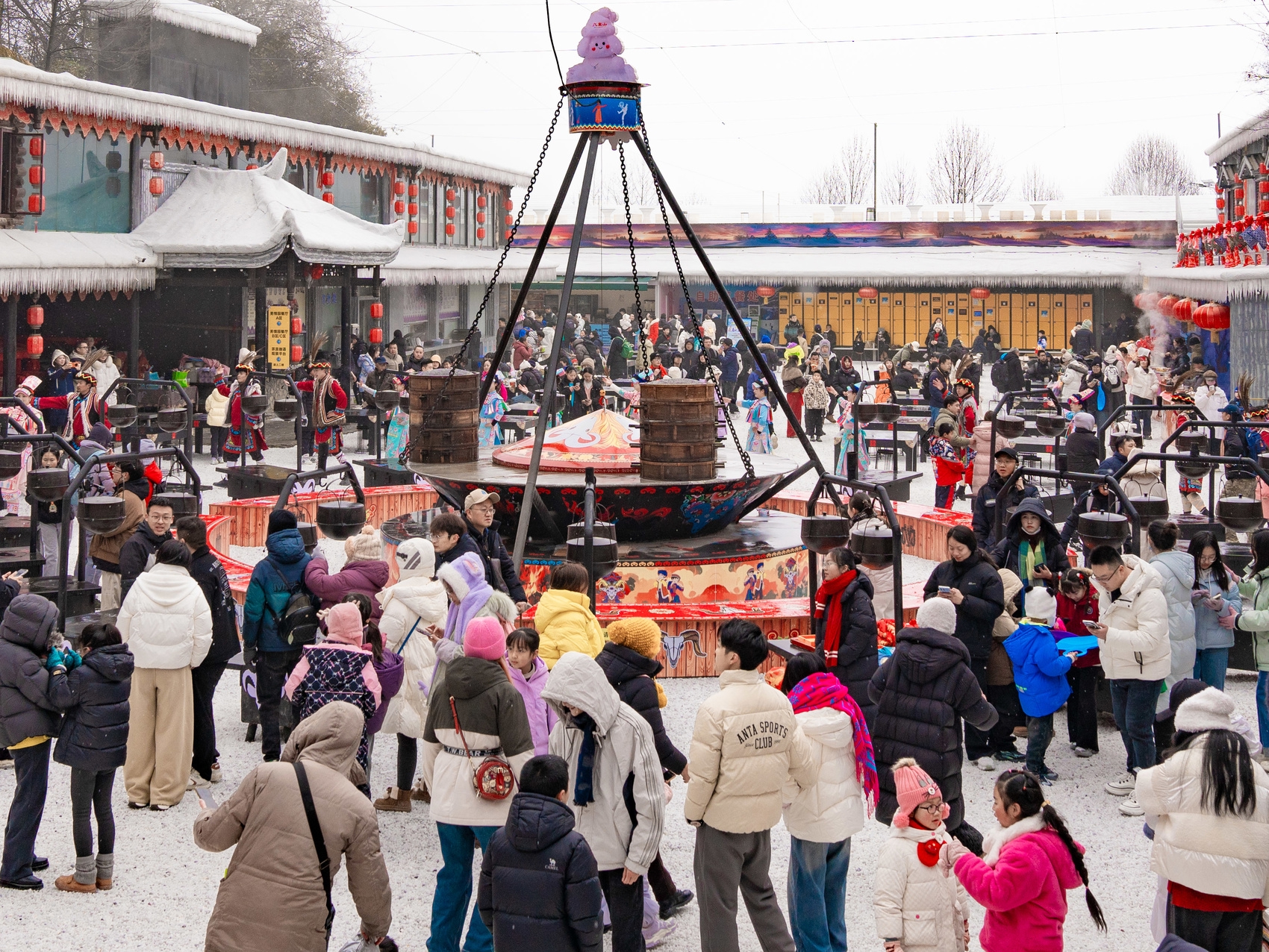 九皇山滑雪场海拔约2000米,冰雪季期间,景区围绕特色羌文化资源,在羌寨雪乡每日推出多场民俗展演:传统羌族婚礼表演、民族歌舞快闪、亲子互动剧《姜子牙大战雪妖》等节目轮番上演,融合多个打卡点打造别样羌文化体验场景。在雪乡市集中,还汇集羌宴刨汤、雪地火锅、罐罐烤奶等特色美食。游客也可在畅玩冰雪之后前往高山温泉室,感受“冰雪之后,暖泉之中”的独特舒缓体验。