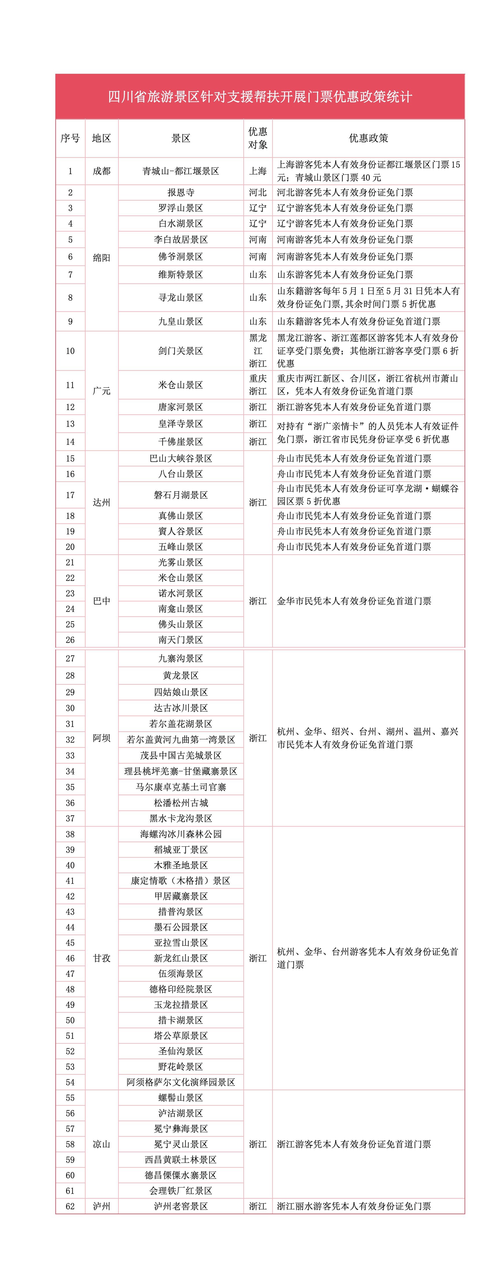 一省帮一县,恩情重如山,汶川特大地震后,举国千里驰援,与四川风雨同舟、并肩奋战。十八载春秋流转,巴蜀涅槃重生。援建恩情永不忘,四川记心上,免票或优惠票价政策正是真诚和质朴的感恩回馈。