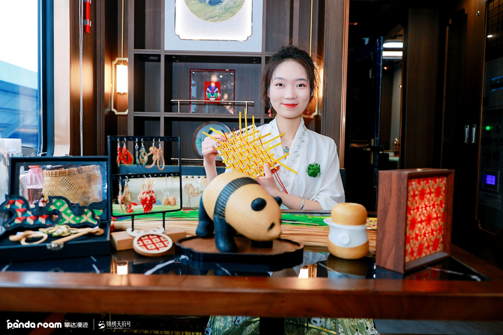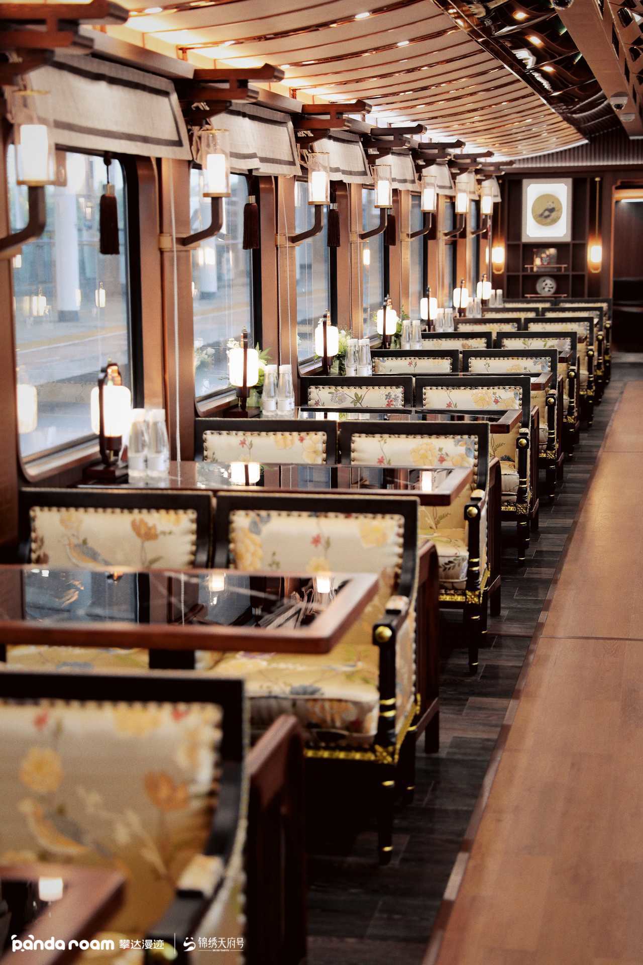步入“锦绣天府号”熊猫专列,处处皆能感受“蜀风”与“安逸”:蜀锦座椅、川菜美食、熊猫造型甜品,还有古筝、竹编等非遗体验,打造出“移动蜀风美学沉浸式空间”。据介绍,“锦绣天府号”全列设18节车厢,共46间客房,车厢配置兼顾品质与私密,满足游客多样化需求,配备双语导游、列车管家等保障旅客无忧出行。