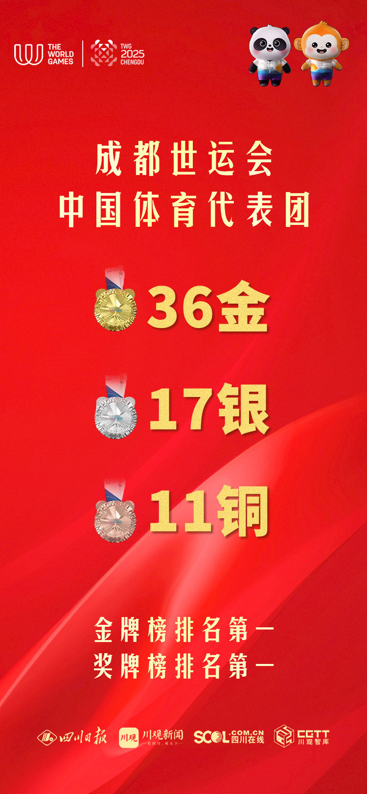 北京时间8月17日,随着成都世运会最后一个比赛项目——垒球项目的结束,8月6日开赛至今的成都世运会在结束34个大项、60个分项、256个小项的比赛之后,落下帷幕。中国世运体育代表团在本届世运会上发挥出色,获得36枚金牌17枚银牌11枚铜牌总计64枚奖牌,位列本届世运会金牌榜、奖牌榜第一,创中国参加世运会以来的历史最好成绩。