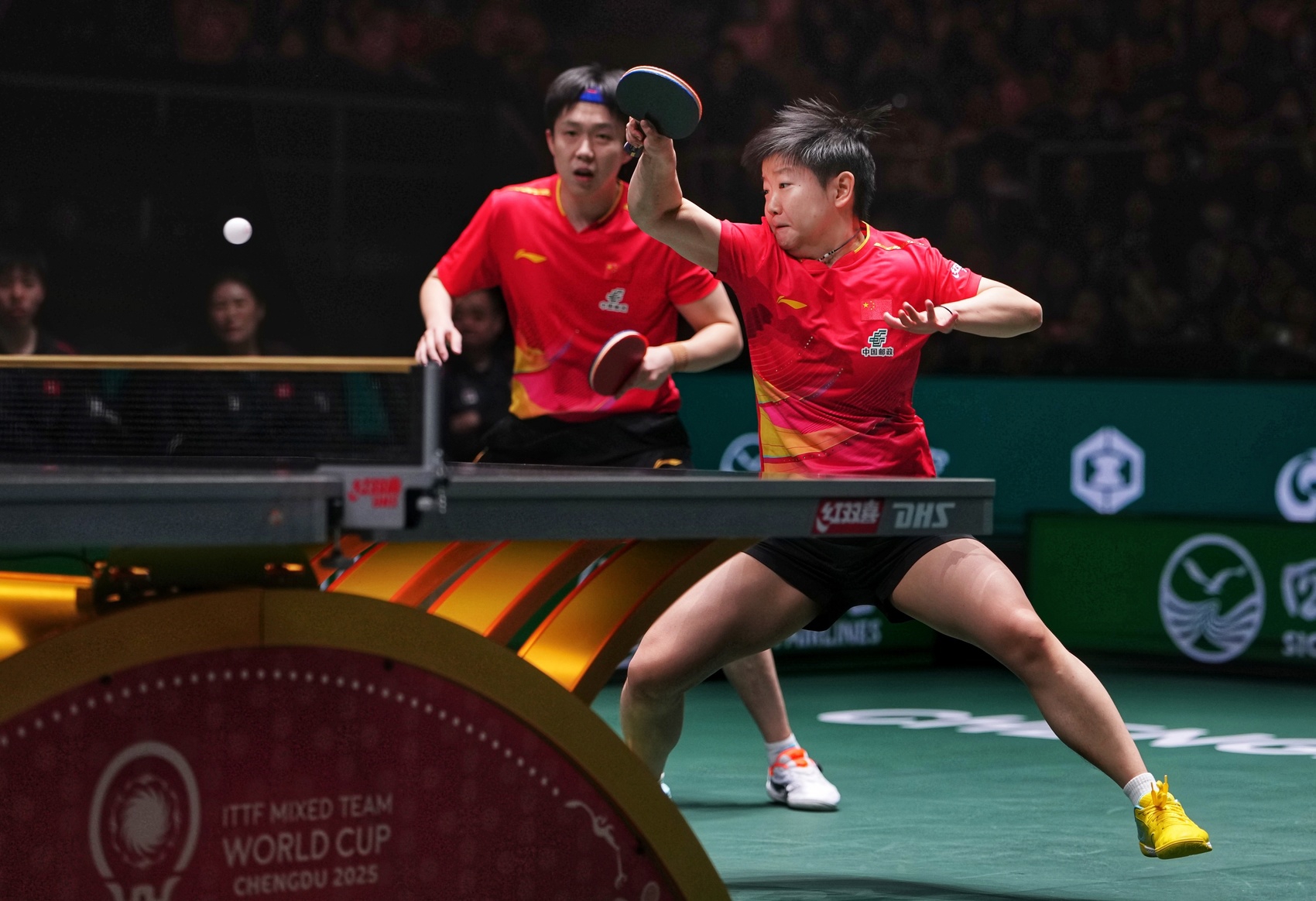 备受瞩目的“莎头组合”王楚钦/孙颖莎在混双比赛中直落三局击败中国香港队的黄镇廷/杜凯琹,为中国队拿下前三局,奠定了整场比赛的胜局。
