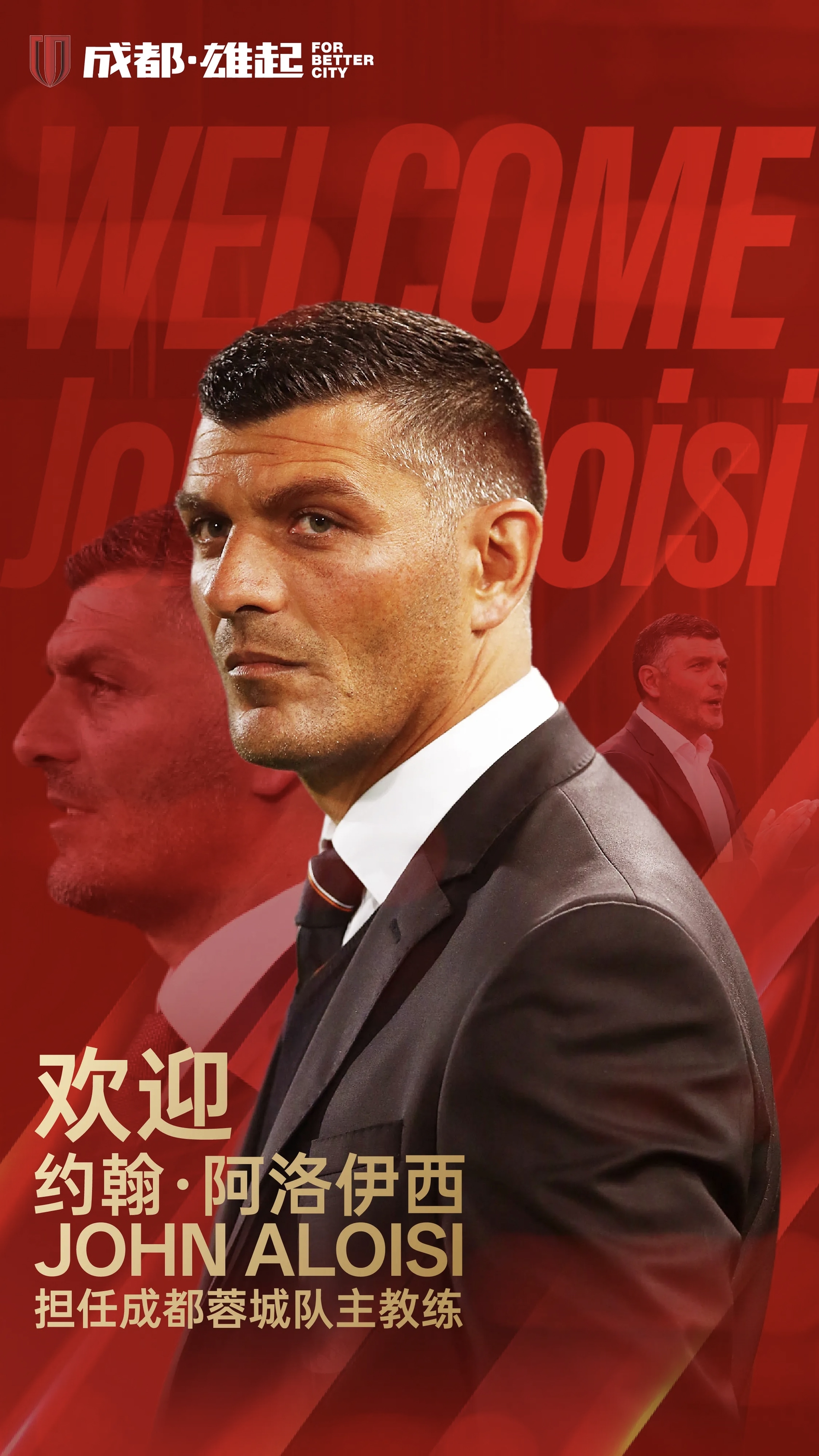 1月6日,成都蓉城足球俱乐部通过其官方社交账号宣布,澳大利亚人约翰·阿洛伊西成为新任主教练,将率领成都蓉城征战2026赛季中超联赛以及205/26赛季亚冠精英联赛。