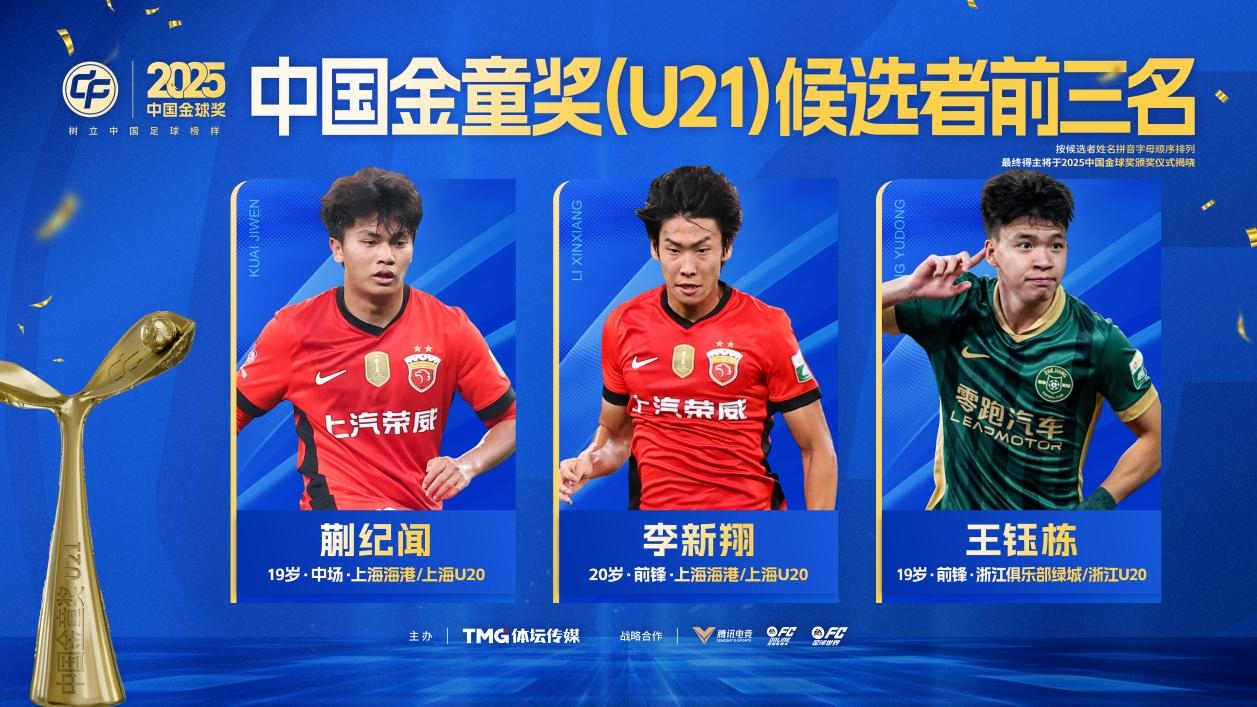 随着U23亚洲杯迎来最终的冠亚军决赛,2025中国金球奖也在1月23日公布了各奖项前3名名单。正在全力备战U23亚洲杯决赛的多名球员入选。其中,蒯纪闻、王钰栋在金童奖U21组别排名前三,徐彬、吾米提江、杨希入围2025中国金童奖(U21)的候选序列。