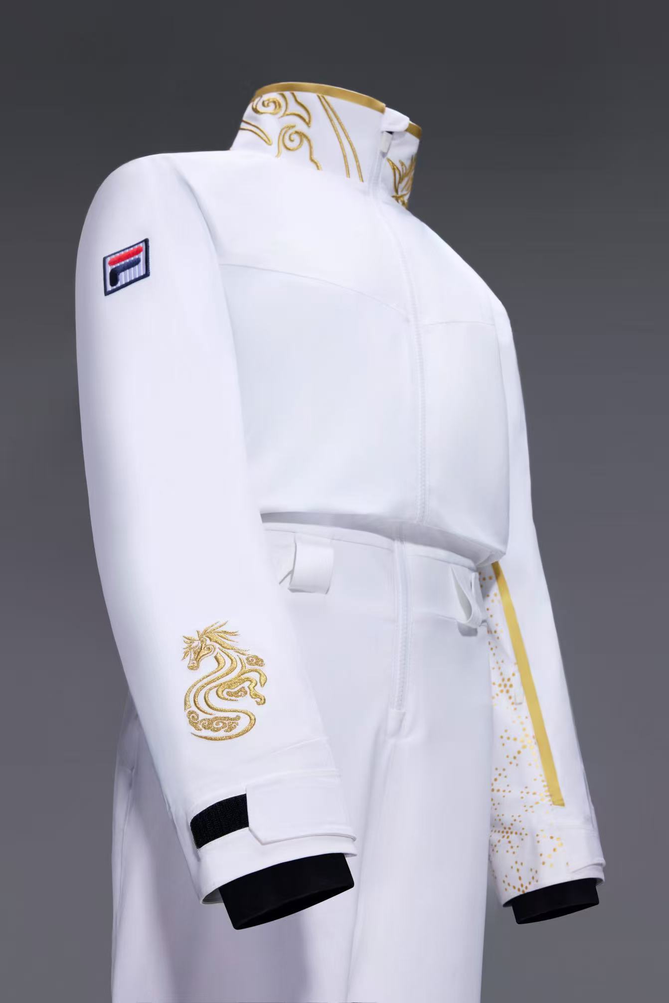 首先,这套比赛服在外观设计方面,基于雪地环境下的可视度研究,分别打造适配白天与夜晚竞赛场景的两套配色方案。细节设计上,以“马到成功”金属线绣花和“圆点必胜雪花”印花点缀其中,展现出中国运动员在赛场上志在必得的决心与风采。更为重要的是,空中技巧项目要求人体姿态非常标准,空中看起来不能弯曲,因此在比赛服装上的设计上,就会有一些该项目专属的特点,比如裤脚加一些拉伸功能,腰间、腋下等部位的设计既要有牵伸的作用,又要结实耐用。
