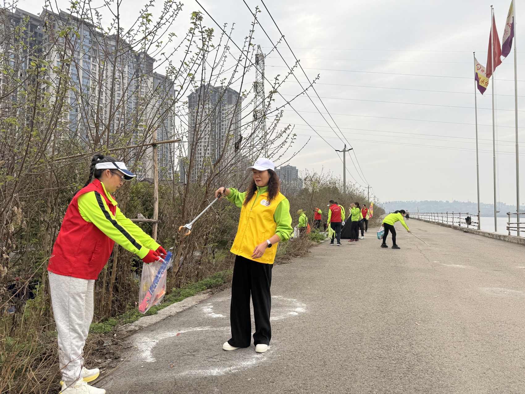 清晨6点,眉山岷江河堤上已是一片忙碌。40余名眉山健跑志愿服务队的引领员手持垃圾夹、垃圾袋,沿河堤展开“学雷锋·护母亲河”垃圾捡拾行动。烟头、纸屑、塑料瓶被一一清理。