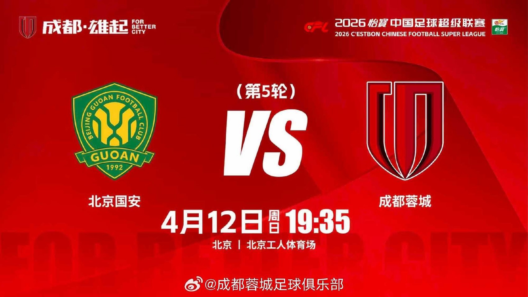 4月12日晚,2026赛季中国足球超级联赛第5轮比赛迎来一场焦点比赛,目前联赛领头羊成都蓉城客场挑战上赛季足协杯冠军北京国安。成都蓉城在先丢一球的情况下,凭借韦世豪在比赛最后时刻的两粒进球,2∶1逆转战胜对手,进一步巩固在积分榜榜首的位置。