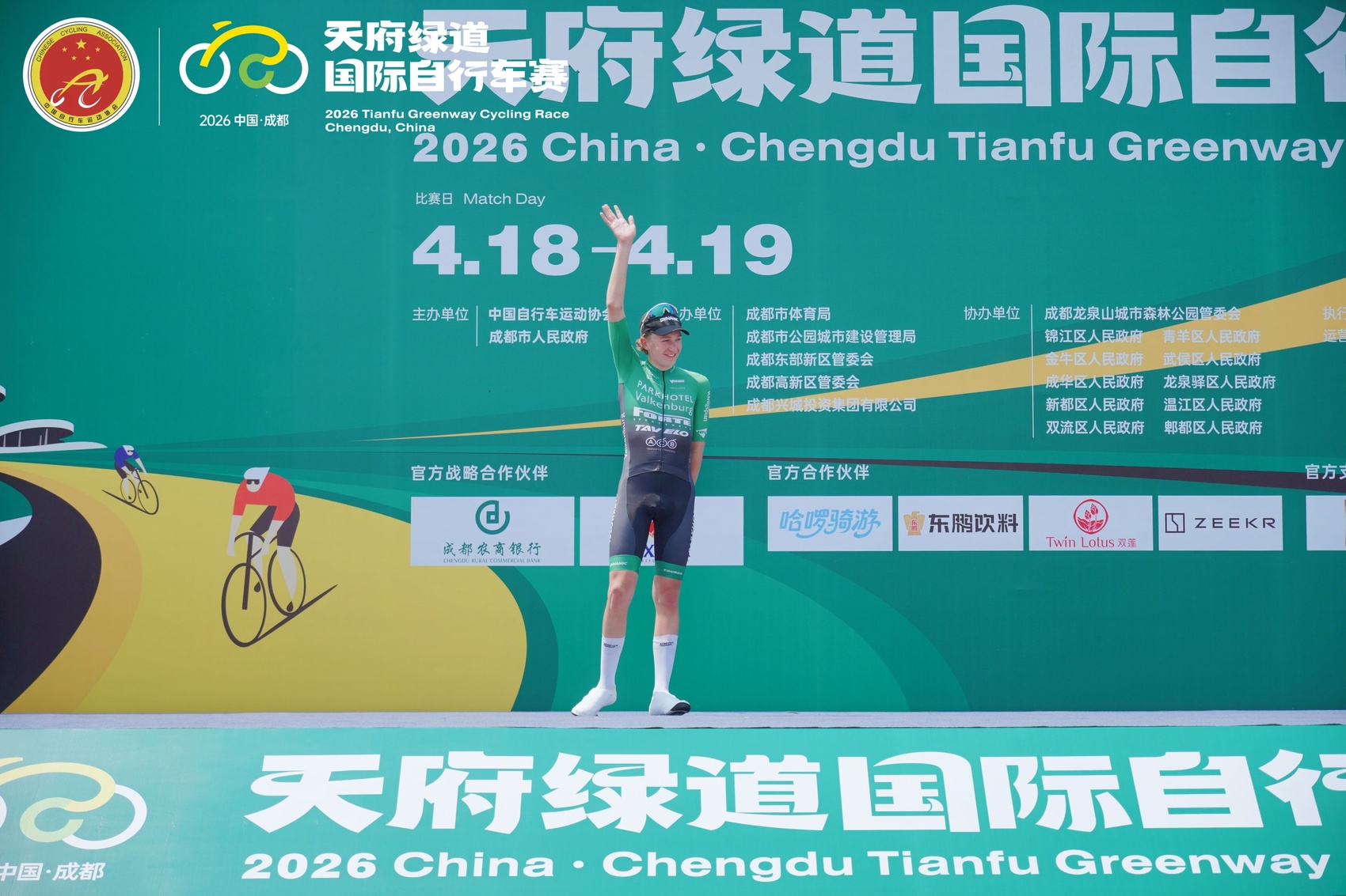 4月19日,2026中国·成都天府绿道国际自行车赛在成都东部新区三岔湖完成本年度收官之战。荷兰瓦尔肯堡酒店洲际队继4月18日拿到团体计时赛冠军之后,该车队的布罗默斯马·埃尔默又以2小时21分49秒的成绩夺得个人总成绩冠军,并拿下了冲刺王,同时收获了绿衫和蓝衫。怒桑塔纳洲际队的车手里德万·穆罕默德荣膺爬坡王,穿上圆点衫;而瑞豹洲际队的王兵则拿下了象征中国最佳车手的白衫。