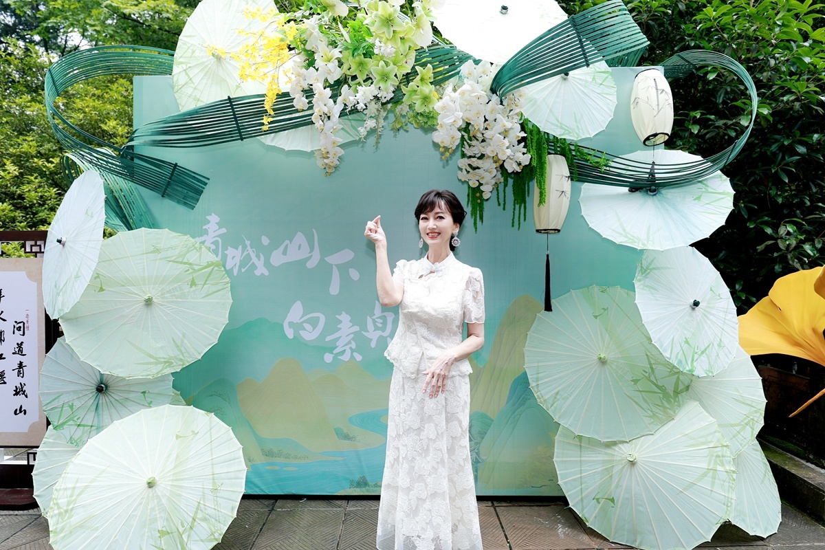 《白蛇传》的民间传说故事中,白素贞在青城山修炼。以《白蛇传》为蓝本改编的影视剧当中,赵雅芝饰演的“白素贞”形象几乎家喻户晓。当日下午2点,青城山青城仙馆掌声雷动,在舞蹈表演接近尾声时,赵雅芝登场,笑称“这次好像回家一样,而且回的是娘家”,亲切互动点燃现场热情。