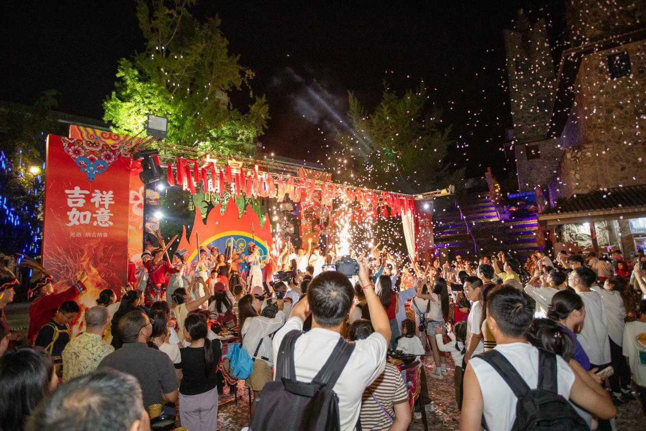国庆期间,九皇山第九届萨朗狂欢节持续举行,推出护送白石接受赐福之旅、羌族民俗快闪、羌王判案情景剧、羌王阿巴白构等互动活动,让游客多维体验羌文化。此外,还有篝火萨朗舞、特色羌舞演出、“咂酒挑战”“羌山蹦‘仙’迪”等,让假期欢乐不重样。