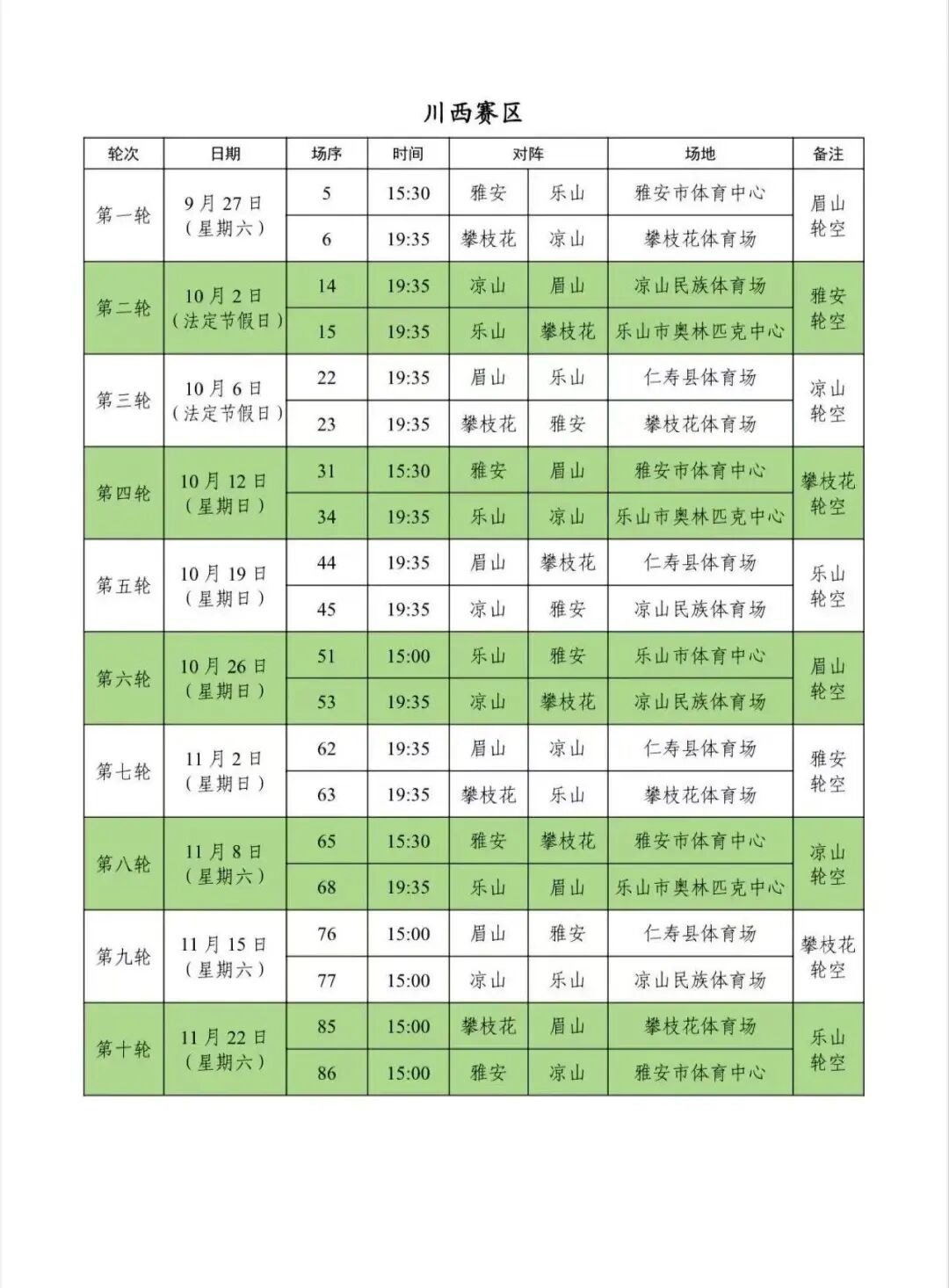 根据本赛季“川超”联赛的赛程安排,10月1日,自贡队在自贡市南湖体育中心迎战内江队,将拉开这个国庆中秋“双节”假期的“川超”大赛序幕。10月2日,川东赛区将迎来三场精彩对决。其中,达州与成都的两强相争尤其引人注目。而在同一天,川西赛区,凉山队主场与眉山队、乐山队主场与攀枝花队的比赛,同样不容错过。