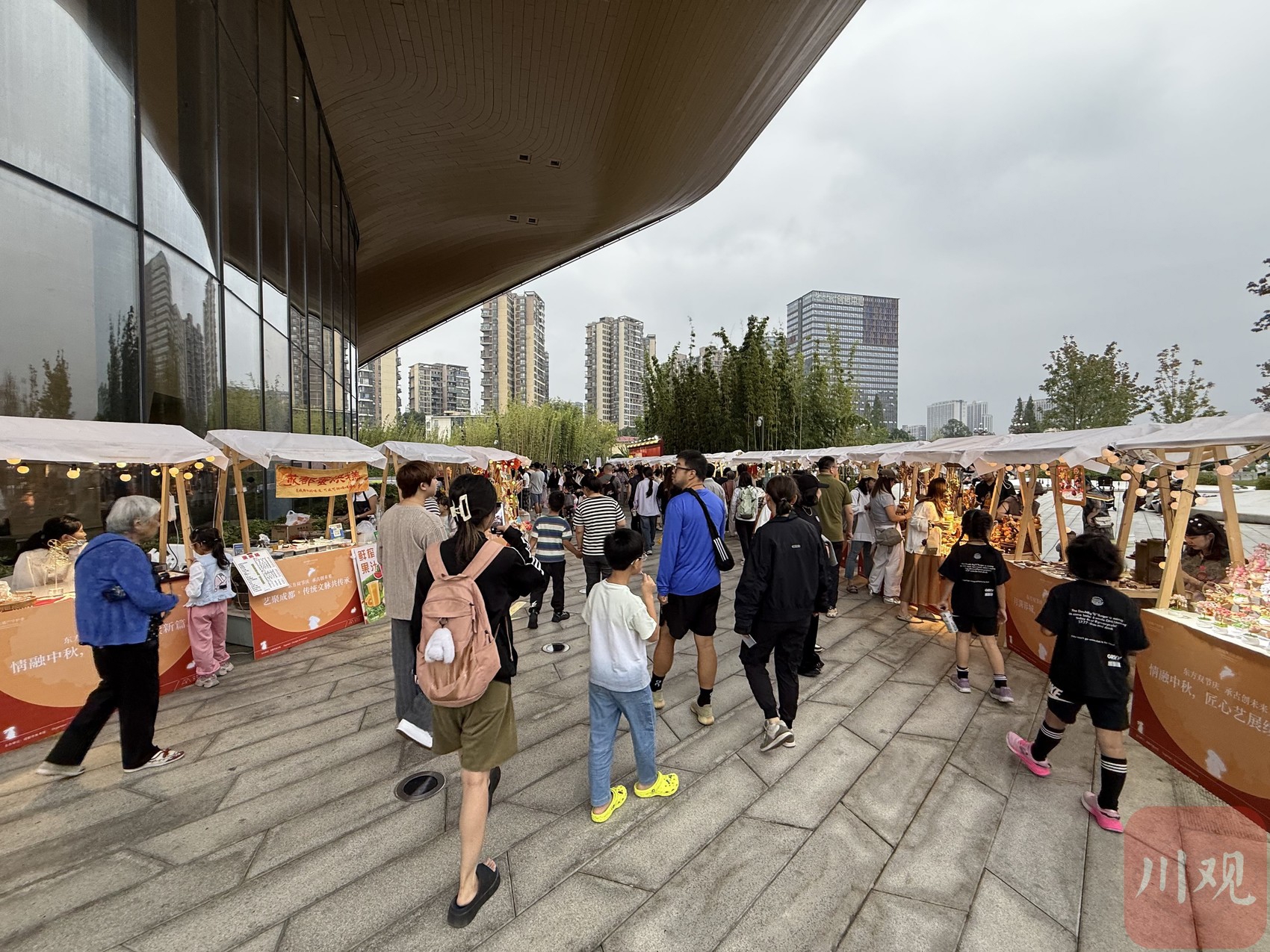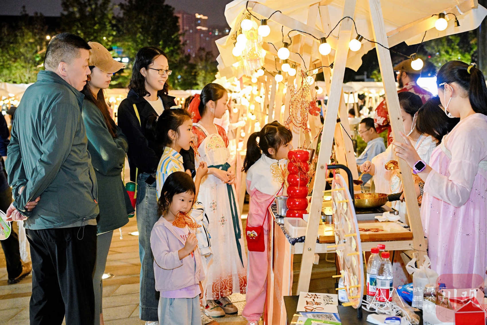 艺术市集里满是慢慢逛的惬意,传统文化爱好者与Z世代都能寻得热爱;美术馆公益导览藏着“印迹余晖”活动的惊喜,邀游客寻找印章,集齐还能领好礼;还有“一瞬月光”中国传统合唱快闪、“国庆绘明月”月球灯手工体验、川剧变脸表演、青年夜校成果展……来到现场的游客,无论男女老少,都能有心仪的文化艺术体验。