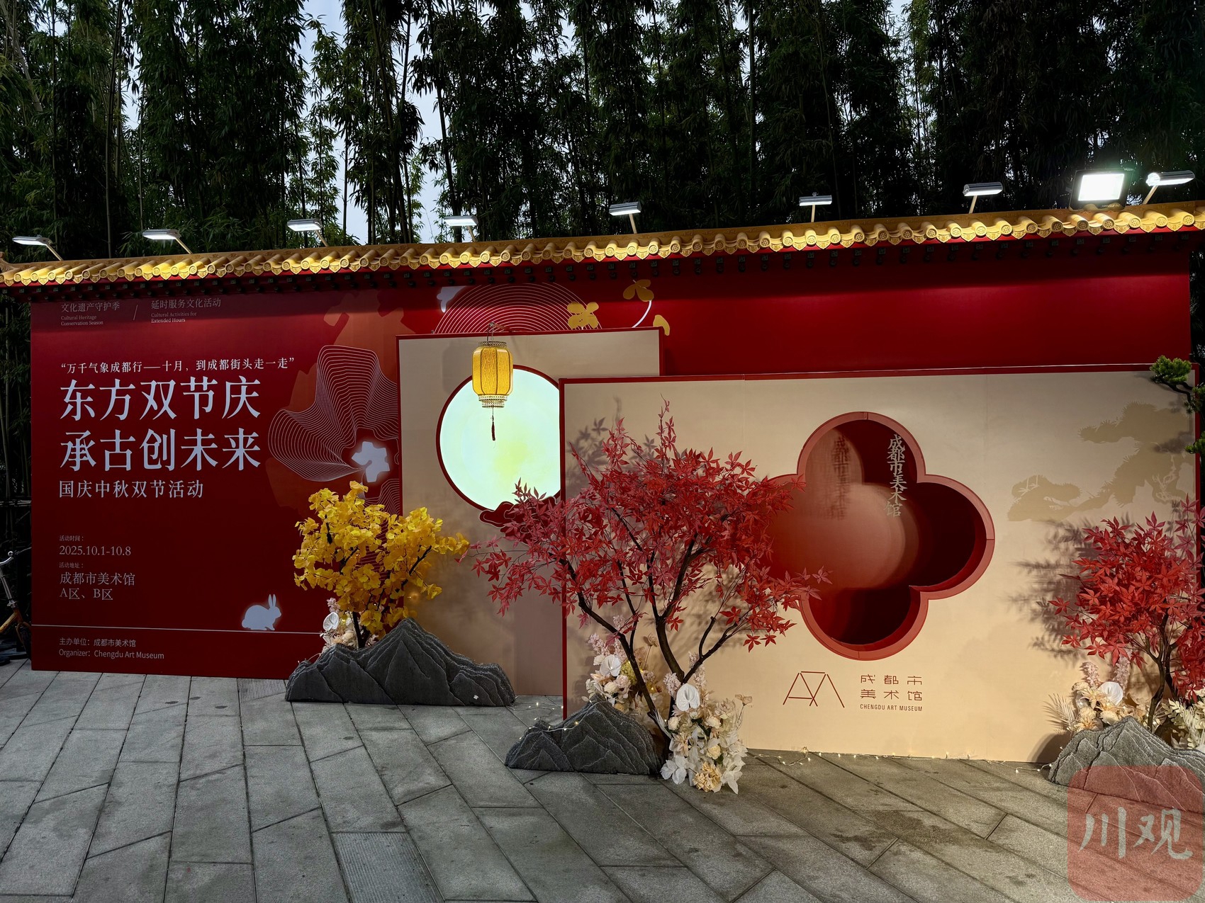 10月1日,成都市美术馆举行“东方双节庆,承古创未来”主题美术馆之夜活动。在室内外空间,游客观众观赏非遗表演、传统合唱等活动,亲身参与非遗技艺体验、艺术集市、游园印章收集等,感受了一场精彩纷呈的艺术盛宴。