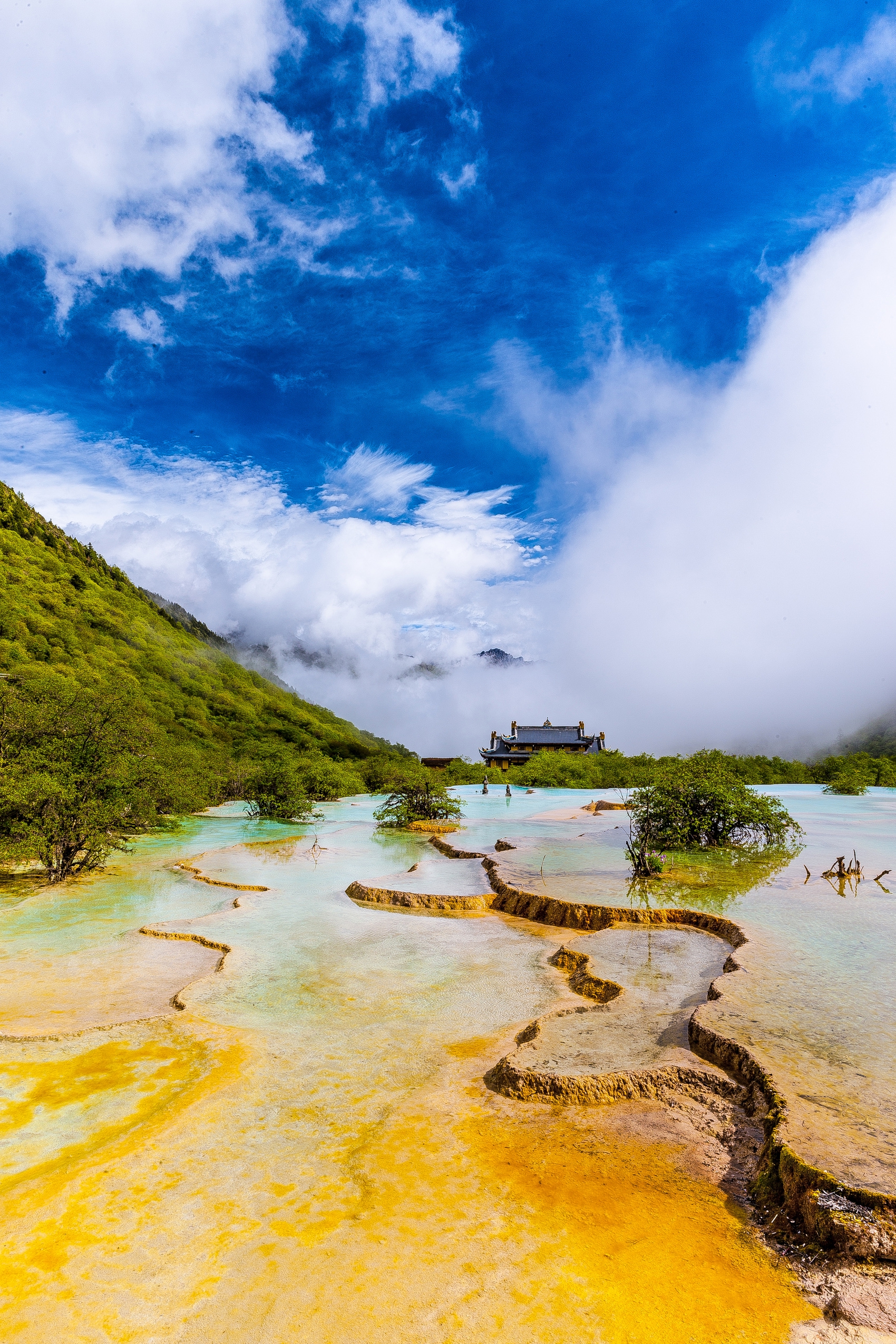 一圈一圈的碳酸钙围堤,用特有的骨感组成了一个一个画框;一幅挨着一幅,又组合成巨幅画作。这让我想到一个成语:叠床架屋;而这个成语,在黄龙被彻底颠覆了原来的词意,成为一个有意境、有意趣、有意思的绝妙好词。