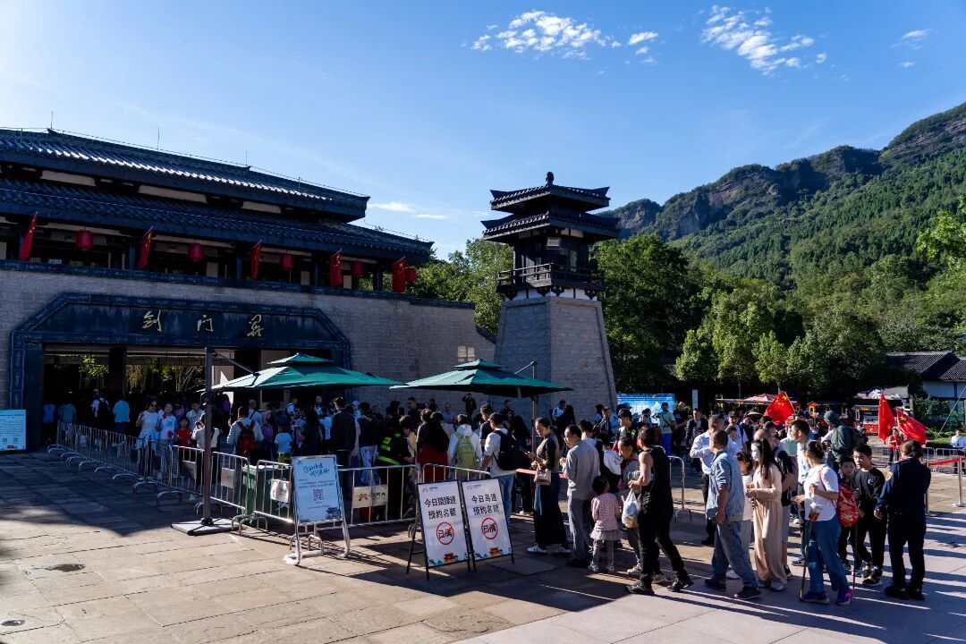 广元剑门关景区持续成为当地“流量担当”,推出民俗体验、科技体验等丰富活动,同时为了让游客国庆假期的体验更顺畅,景区增设五大“背诵《蜀道难》免门票”点位,联动翠云廊推出默写福利,以更贴心的安排邀游客以诗为钥解锁雄关与古柏的双重胜景。