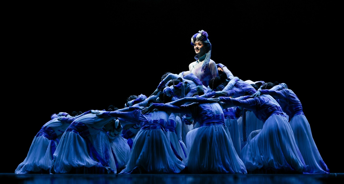 主创团队介绍,舞蹈在轻柔舒缓基调的动作中穿插点顿式摆臂、转头,带来更为丰富的审美感受。演员们以摩梭传统“点踏步”为基础,演绎出如水般连绵的动律美感,既保留了民族舞蹈的原生形态,又融入了现代编创理念,将摩梭人特有母系氏族文化含蓄、素雅的情感,通过意境的营造流露出来。