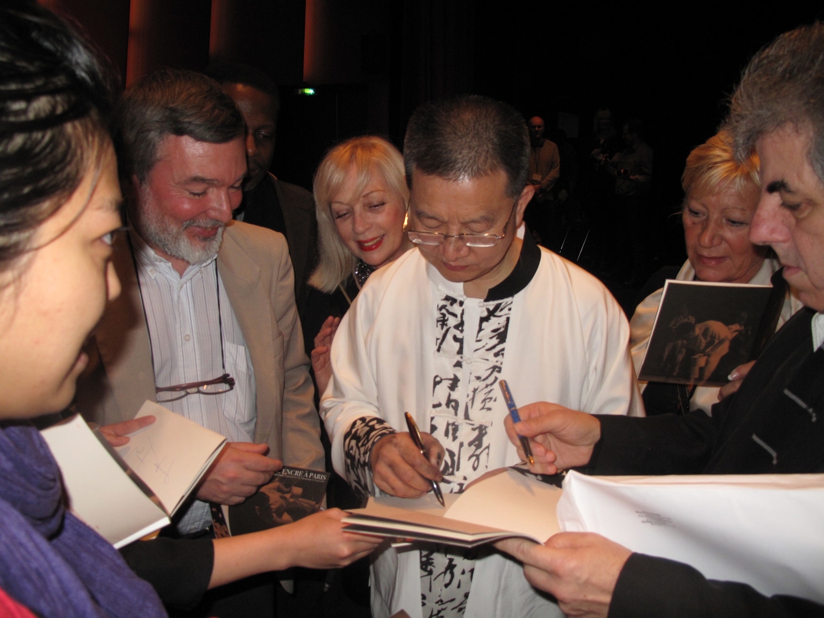 “当时我担任作家出版社编审,拉斯洛是我之前在英国伦敦开展文化交流期间认识的好友。当年他抵达北京后,受到我和西川、欧阳江河等中国诗人的盛情款待。”据唐晓渡回忆,其间拉斯洛及同行者都表示出对中国书法很感兴趣。于是,唐晓渡、西川、欧阳江河等陪同拉斯洛一行,来到北京来德艺术中心参观访问。观摩曾来德书法现场展示后,拉斯洛一行对中国书法的博大精深赞不绝口,其同行者当即拜曾来德为师。拉斯洛也表达了希望能获赠其书法作品的意愿。