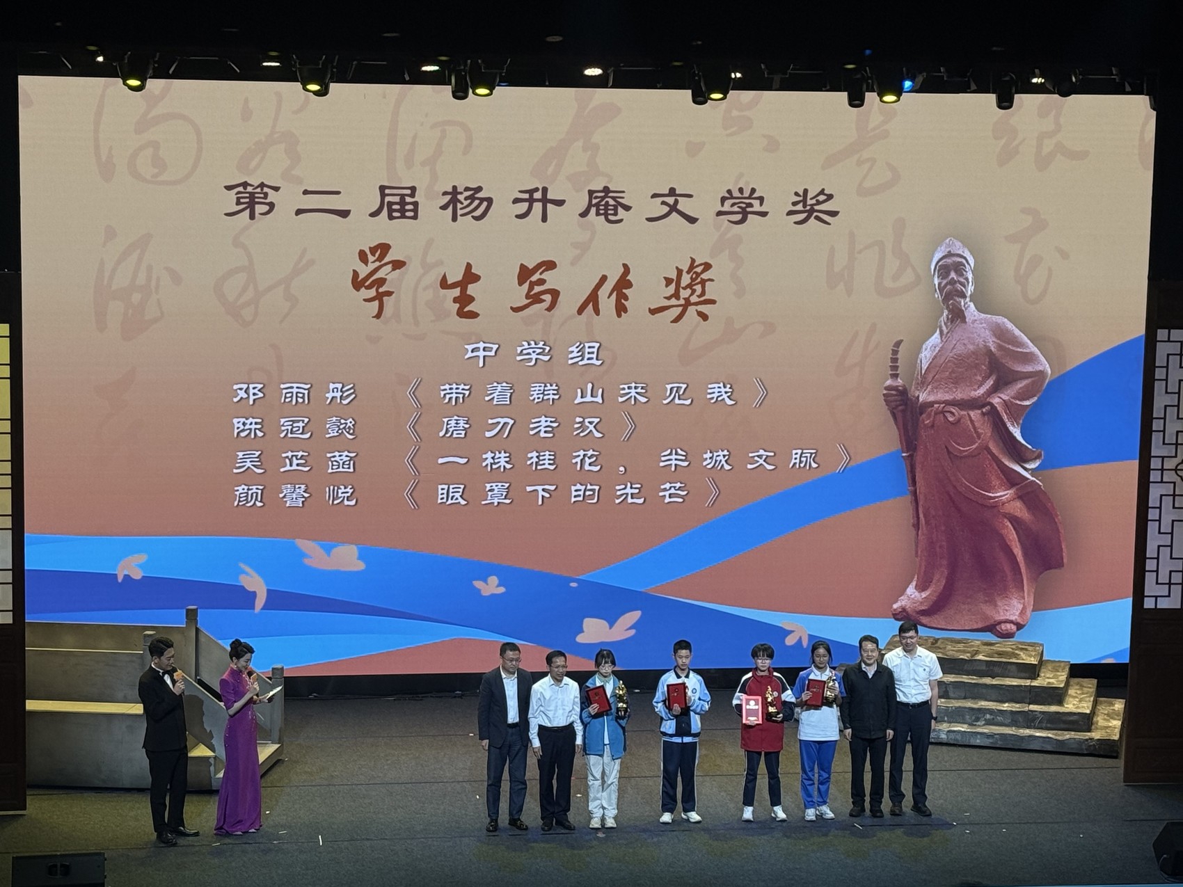 值得关注的是,本届杨升庵文学奖首次设立学生写作奖,共评选出10部获奖作品。从小学组张程程的《欢迎回家看新都》到大学组穆静的《洗澡》,这些作品展现了一幅青春的斑斓画卷。