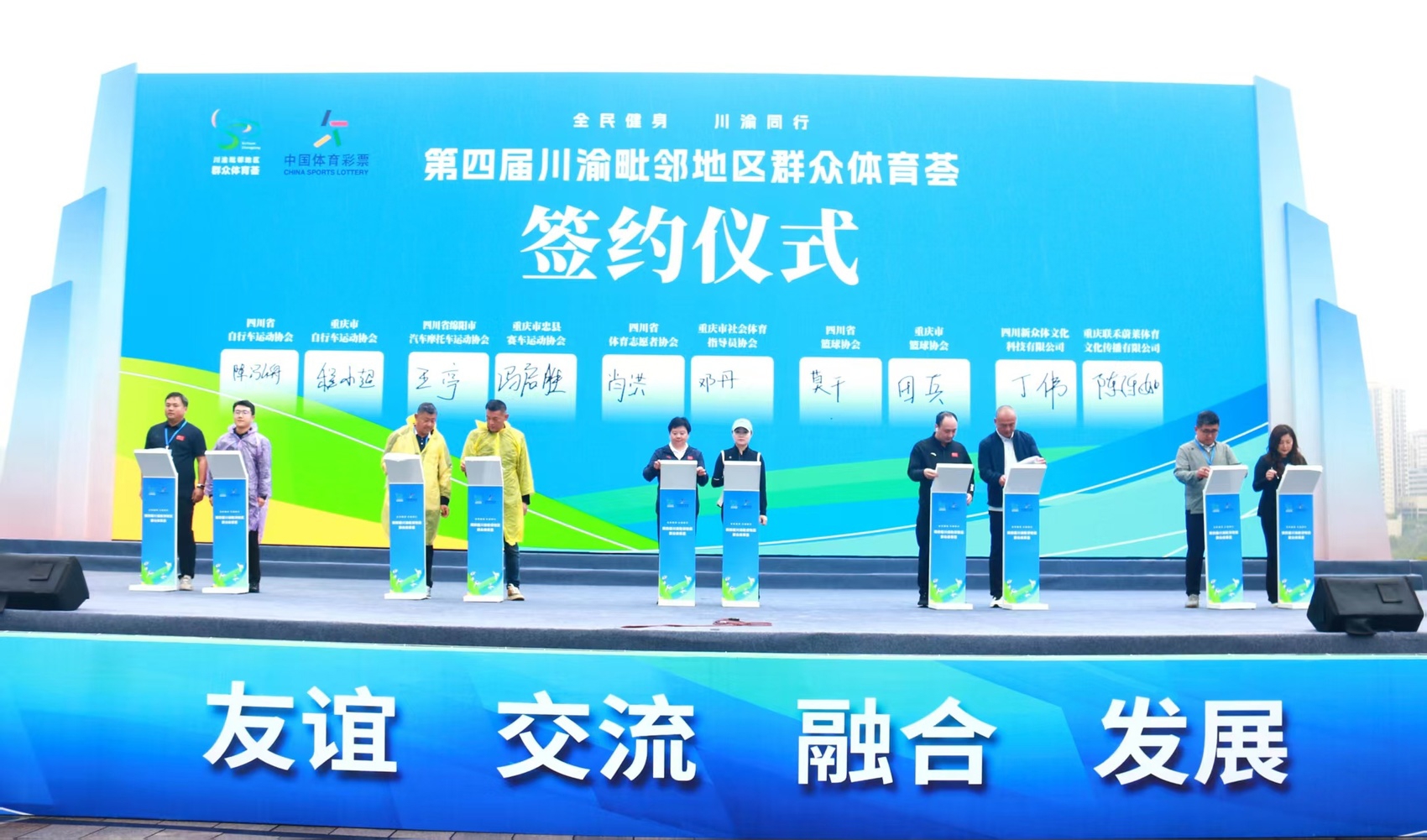 与此同时,四川省自行车运动协会、重庆市自行车运动协会,四川省绵阳市汽车摩托车运动协会、重庆市忠县赛车运动协会,四川省体育志愿者协会、重庆市社会体育指导员协会,四川省篮球协会、重庆市篮球协会,四川新众体文化科技有限公司、重庆联禾蔚莱体育文化传播有限公司等10家单位和企业,就川渝体育协作和联动发展签订了战略合作协议。截至目前,通过川渝毗邻地区群众体育荟促成的合作已达45家,逐步构建起“体育单位—体育协会—村镇社区—体育企业”的多层级协作体系,为川渝体育群众体育和体育产业高质量发展筑牢根基。