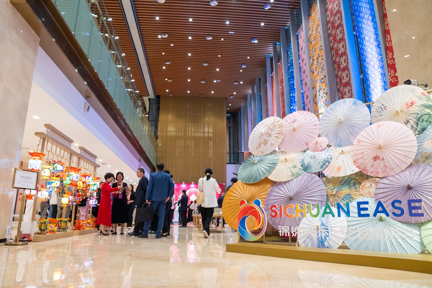 开幕式现场,“绵绣天府·安逸四川”非遗主题展览同步亮相,吸引大批参会嘉宾驻足围观。