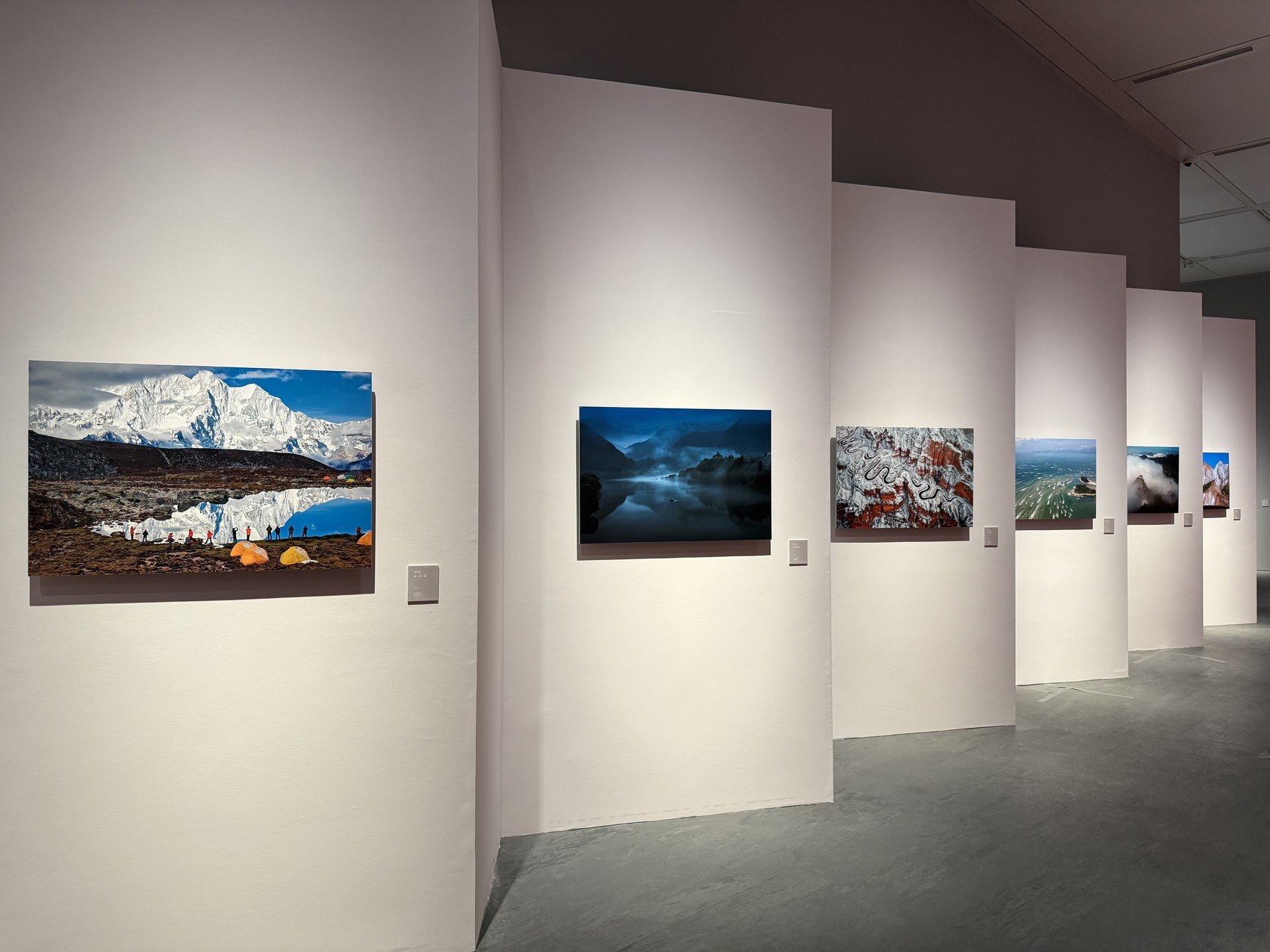 四川美术馆一层和二层的4个展厅,均用于此次全国优秀摄影作品展览展陈。四川是摄影大省,多位川籍摄影师的作品入选展览,风光、人文表现尤为突出,如王达军的《景观·野马》、田捷砚的《云冠降临!雅拉雪山的荣耀时刻》、金平的《榕树下》、袁蓉荪的《辉煌千年今胜昔》、邹森的《火沸人欢漾星河》、曹铁的《同声欢呼》等。
