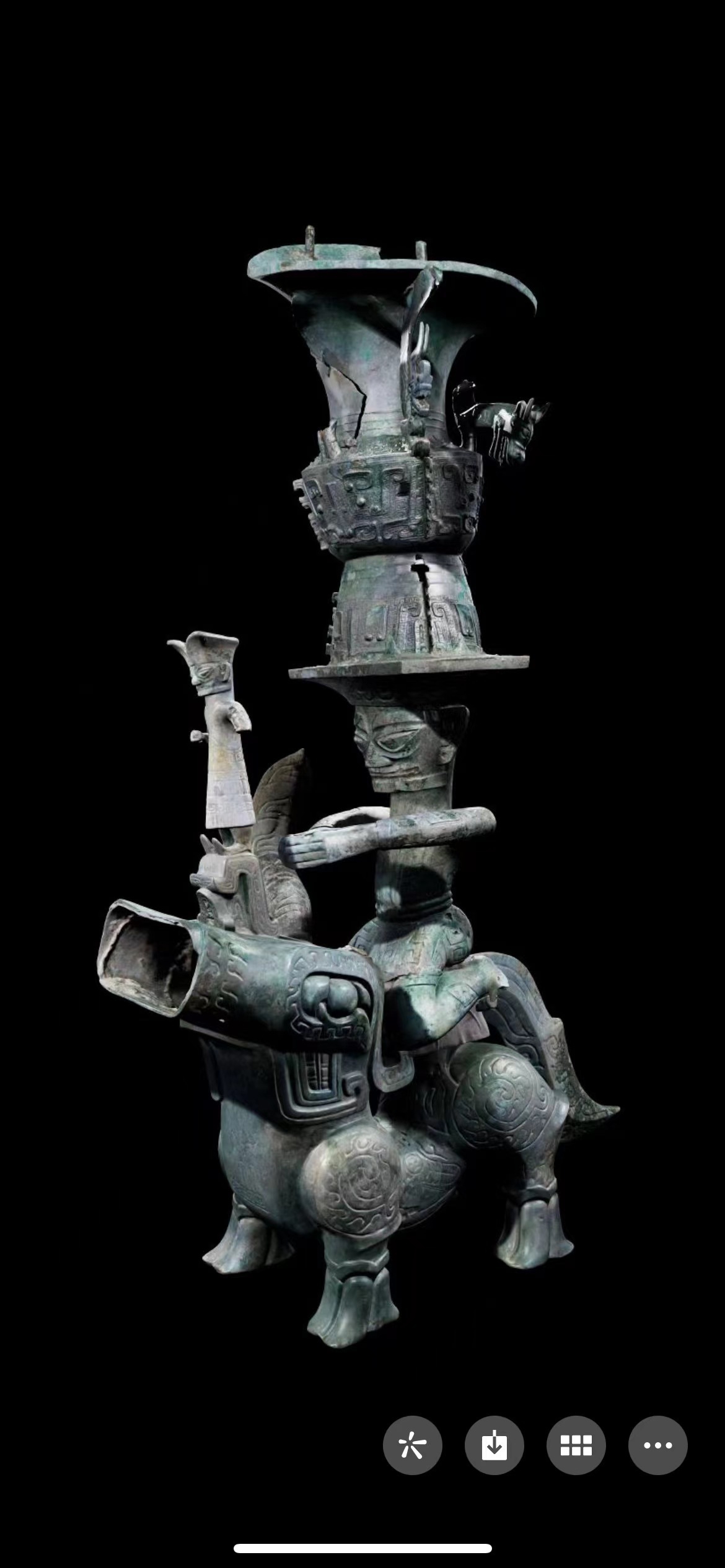 8号坑青铜神兽和3号坑顶尊跪坐人像三维扫描后拼对合体,四川省文物考古研究院供图