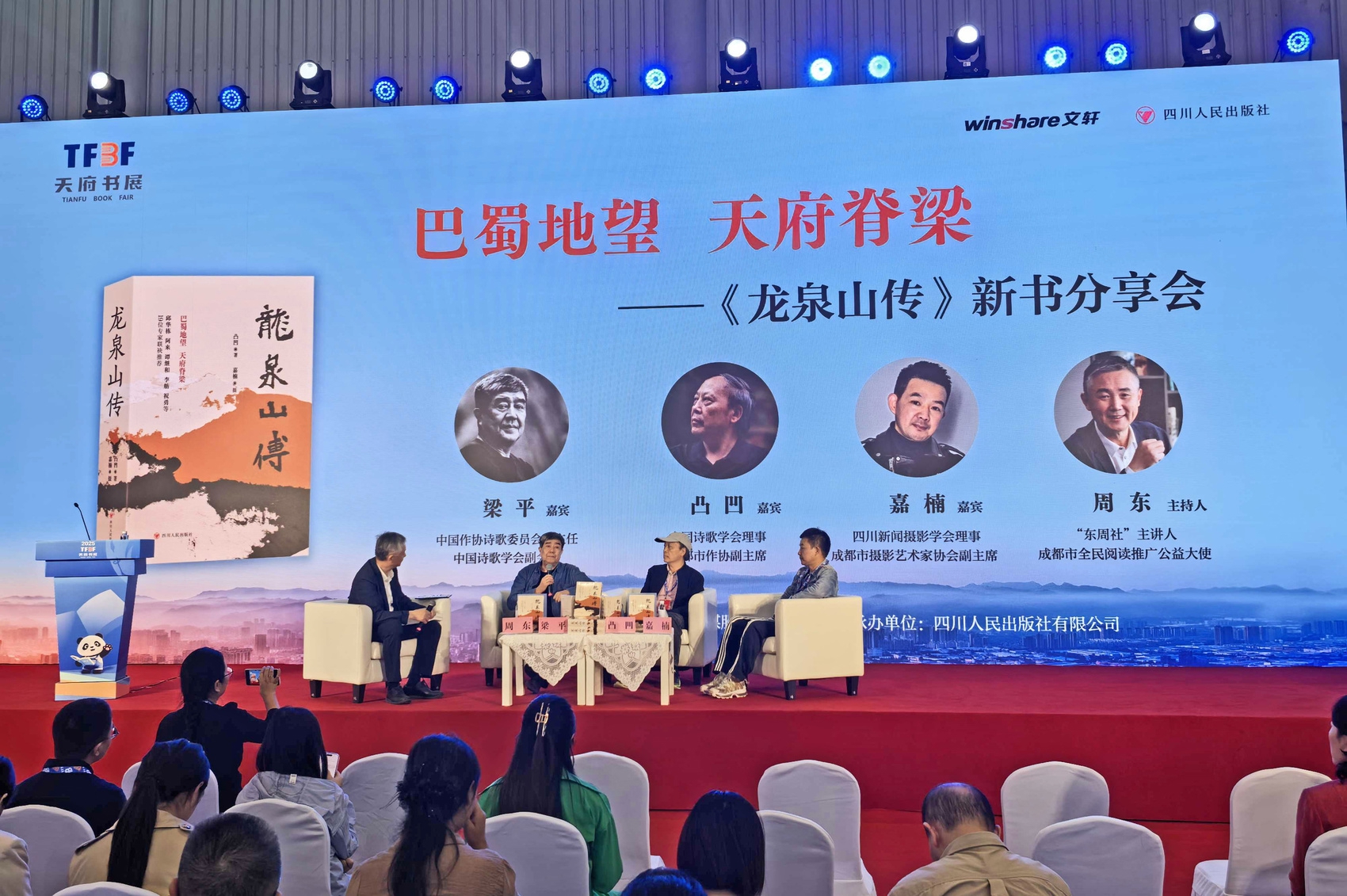 10月17日,在2025天府书展主会场,“巴蜀地望 天府脊梁——《龙泉山传》新书分享会”举行。著名诗人梁平、该书作者凸凹等人以龙泉山为话题,分享山川背后的古今人文地理故事。