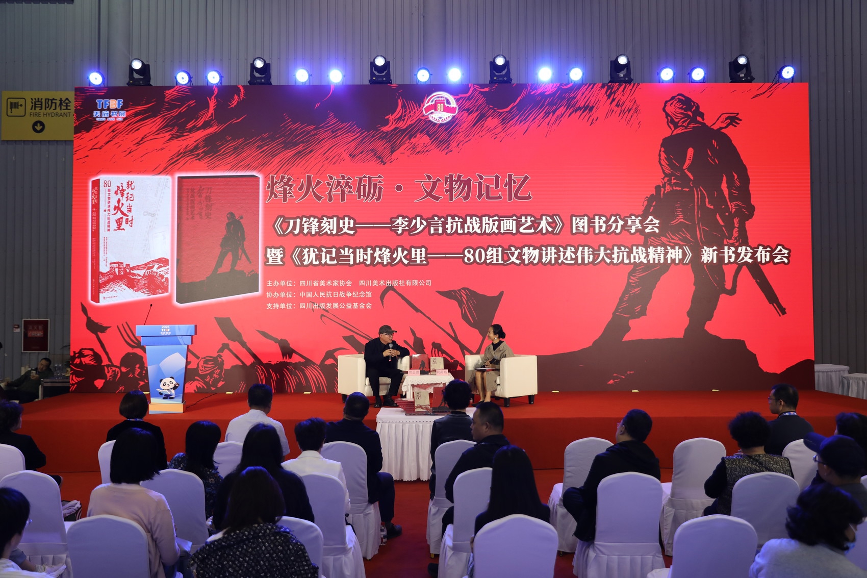 10月17日下午,“烽火淬砺·文物记忆:《刀锋刻史——李少言抗战版画艺术》图书分享会暨《犹记当时烽火里——80组文物讲述伟大抗战精神》新书发布会”在2025天府书展主会场举行。此次活动由四川省美术家协会、四川美术出版社主办。