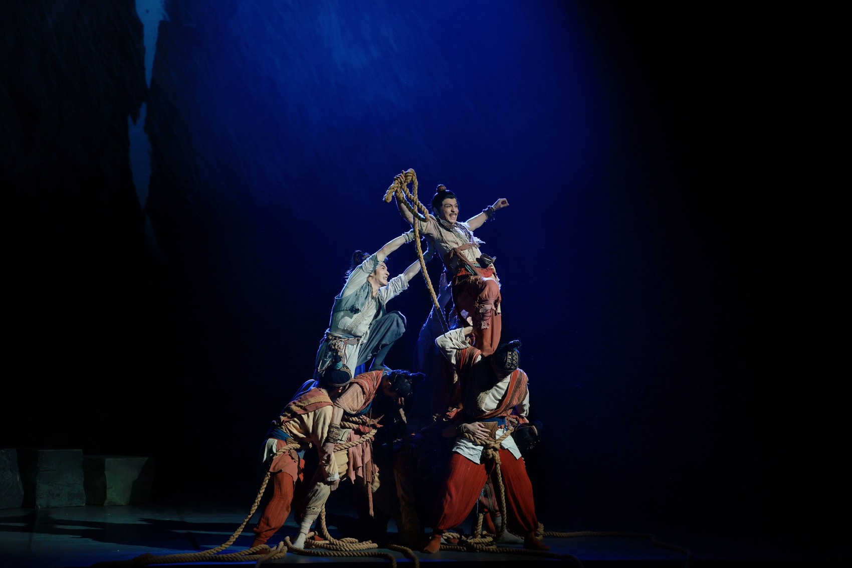 中国古代的石窟作品鲜少留有镌刻者的姓名。在大足石刻的题记中,却有伏氏等46位工匠名字。舞剧《天下大足》由此将叙事焦点从神佛造像转向鲜活的匠人群像。剧目以南宋流民少年“小福”的成长历程为主线,通过其从战乱流离到融入匠人群体、从学习技艺到承继使命的心路转变,凸显人民作为历史创造者的主体地位。