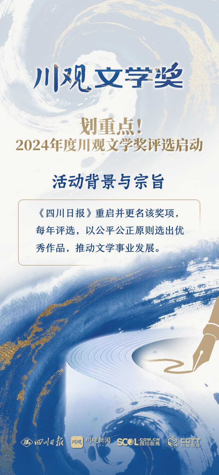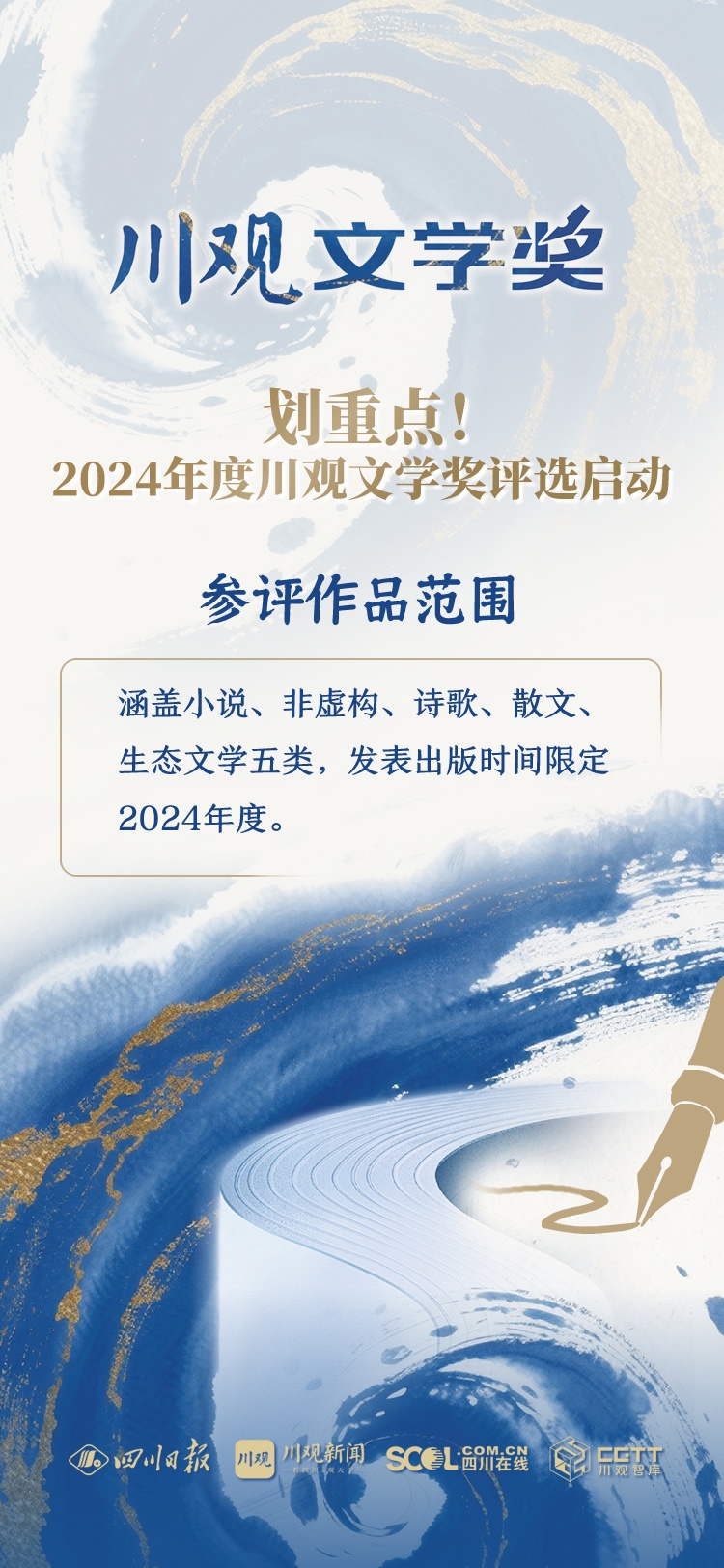 11月12日,2024年度川观文学奖评选正式启动。作为四川文学领域的年度盛事,该奖项前身为1991年创办的四川日报文学奖,2022年重启更名为川观文学奖后,已成为汇聚全国文学力量、对话时代精神的重要平台。
