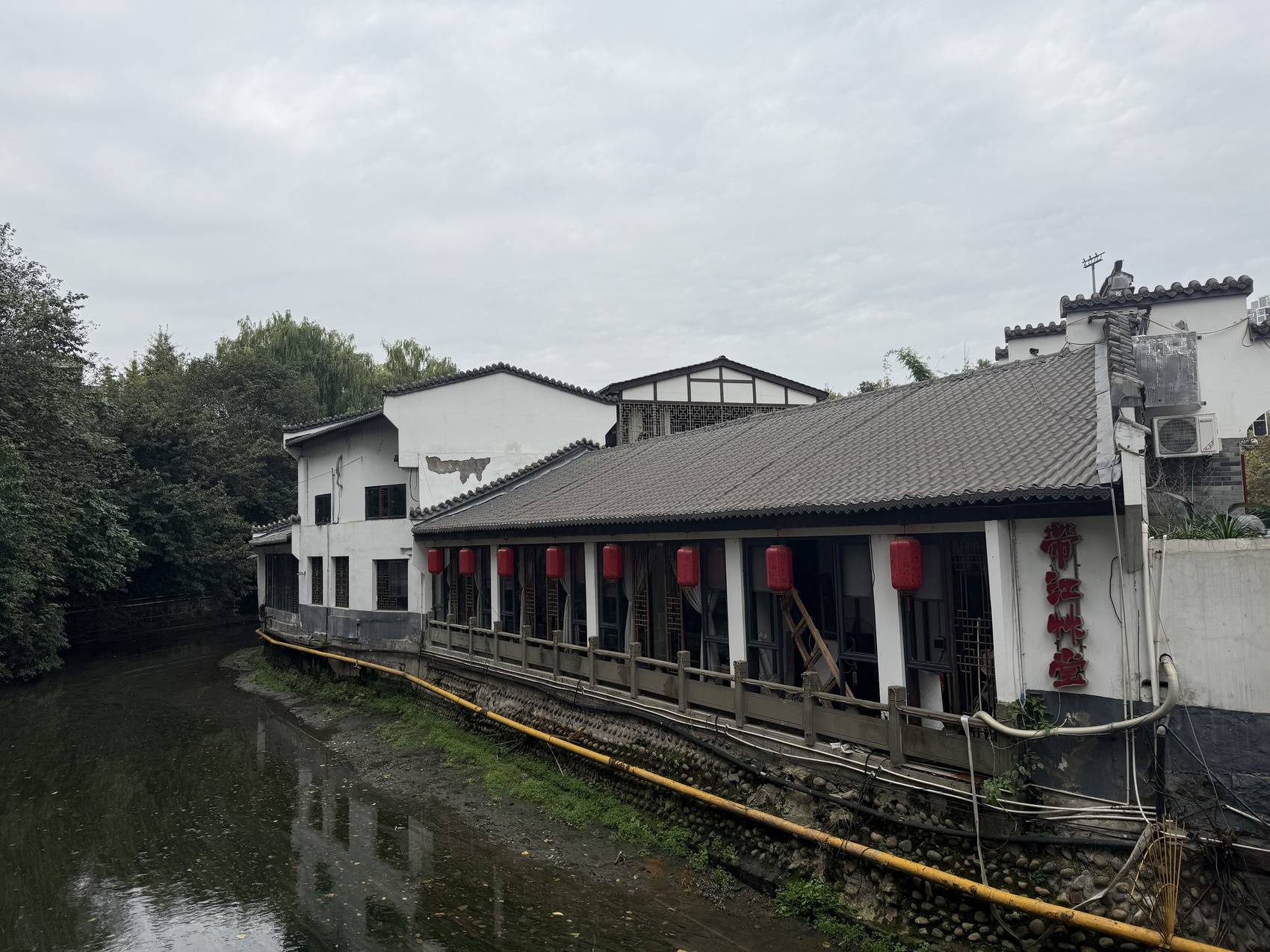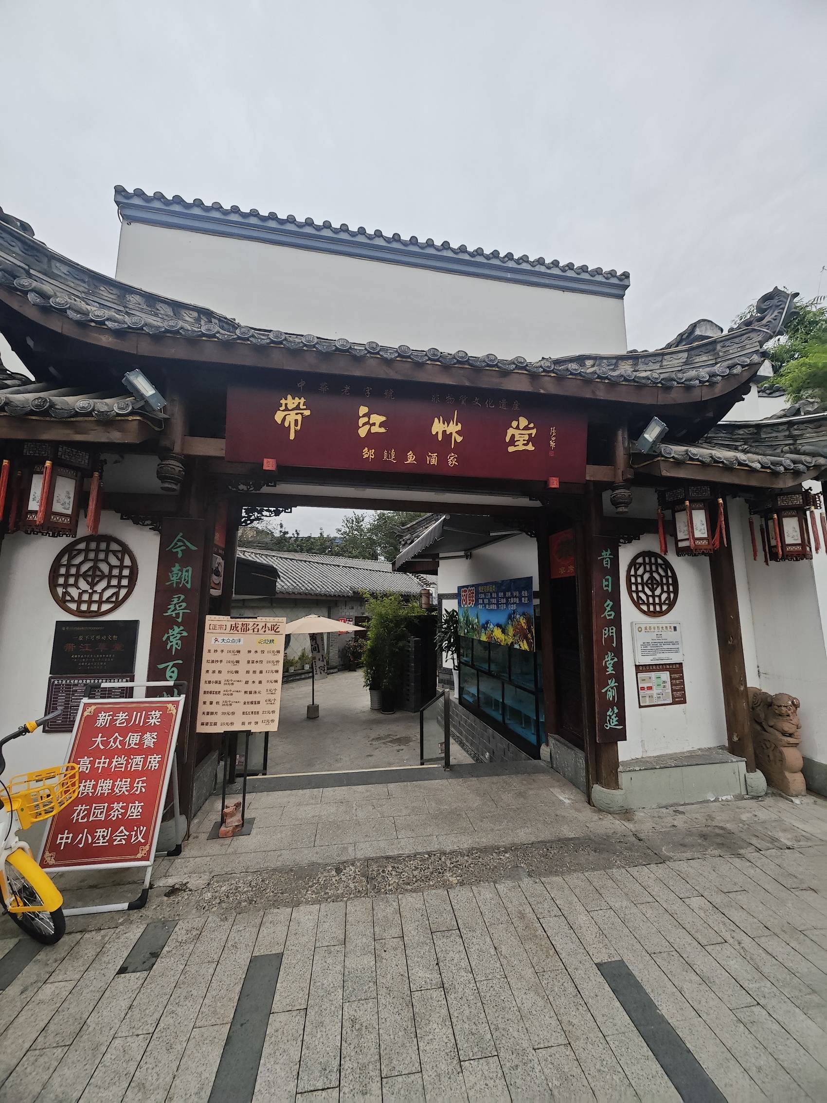 室枕溪流,青瓦叠韵。在成都三洞桥畔,摸底河与西郊河在此温柔相拥,一座白墙灰瓦的川西民居已在此静默守候近九十载春秋。赭色店招上,“带江草堂”四字,古朴厚重。