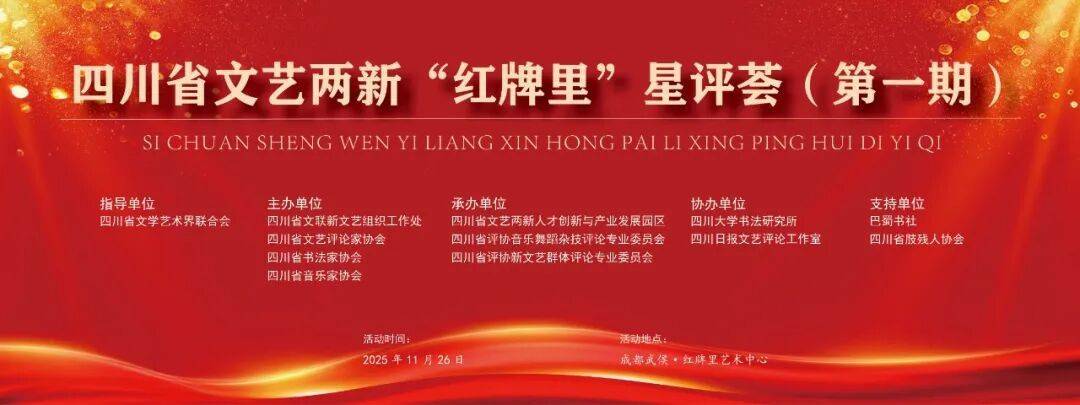 近年来,四川省文联坚持团结引导、联络协调方针,不断加强文艺两新人才培育和阵地建设,推动文化事业与文艺生态持续向好。红牌里星评荟旨在进一步发掘与扶持优秀文艺两新人才和作品,以专业评论引导创作方向,计划通过年度化、品牌化运作,打造四川文艺两新发展的重要平台。未来,星评荟将覆盖十三大艺术门类,持续为文艺两新群体提供展示与成长空间,为推进文化强省建设贡献积极力量。