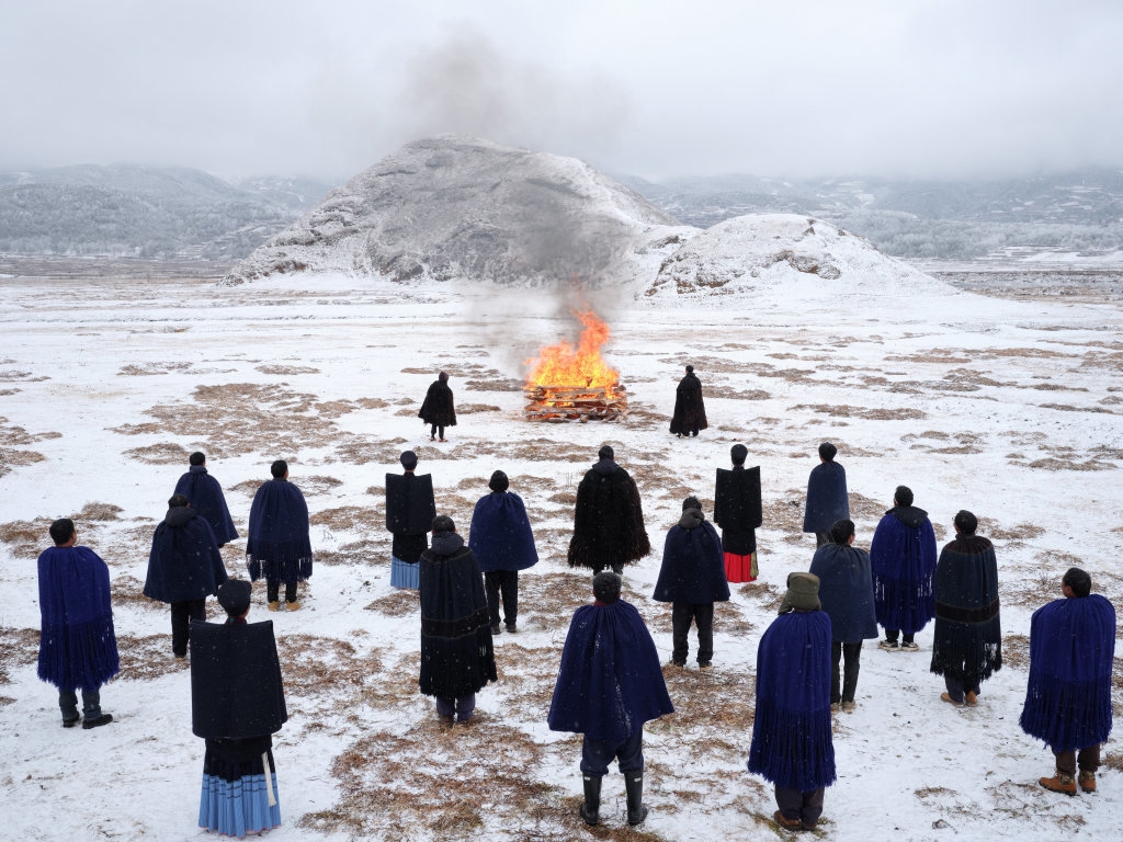 考入北京电影学院摄影学院后,施金宇一边研究、理解当代民族题材摄影创作,一边探索自己的影像语言和叙述方法。《黑色的河流》以彝族创世史诗《勒俄特依》为蓝本,沿着故事中的迁徙之路,施金宇邀请沿途路人化身神话英雄,在现实场景中演绎那些古老的传说。通过《射日英雄》《杀死龙》《与天神的摔跤》等图像,他虚构了一个彝族人从生到死的一生。