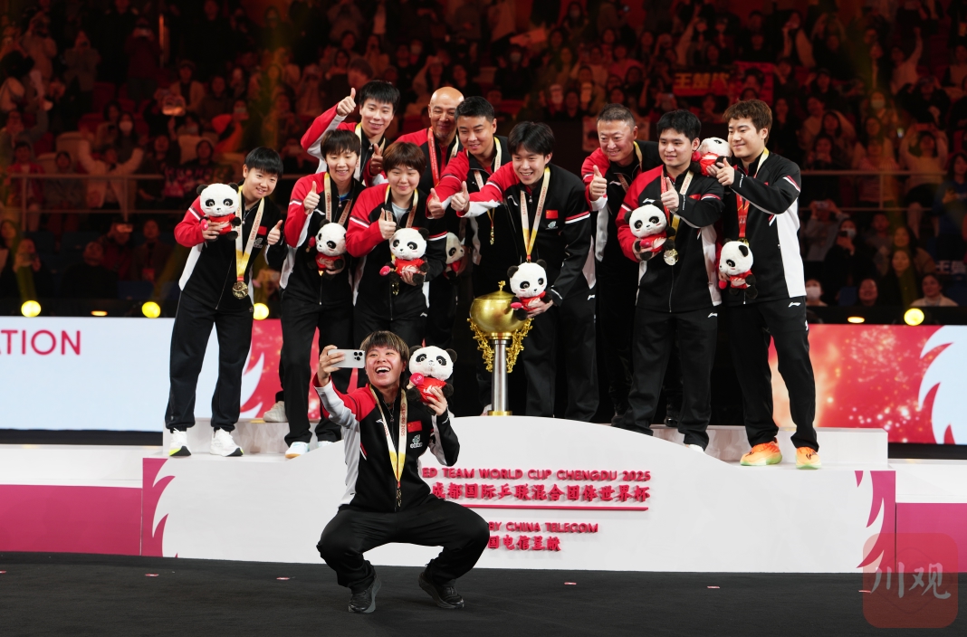 2025年成都国际乒联混合团体世界杯中国队捧杯时刻