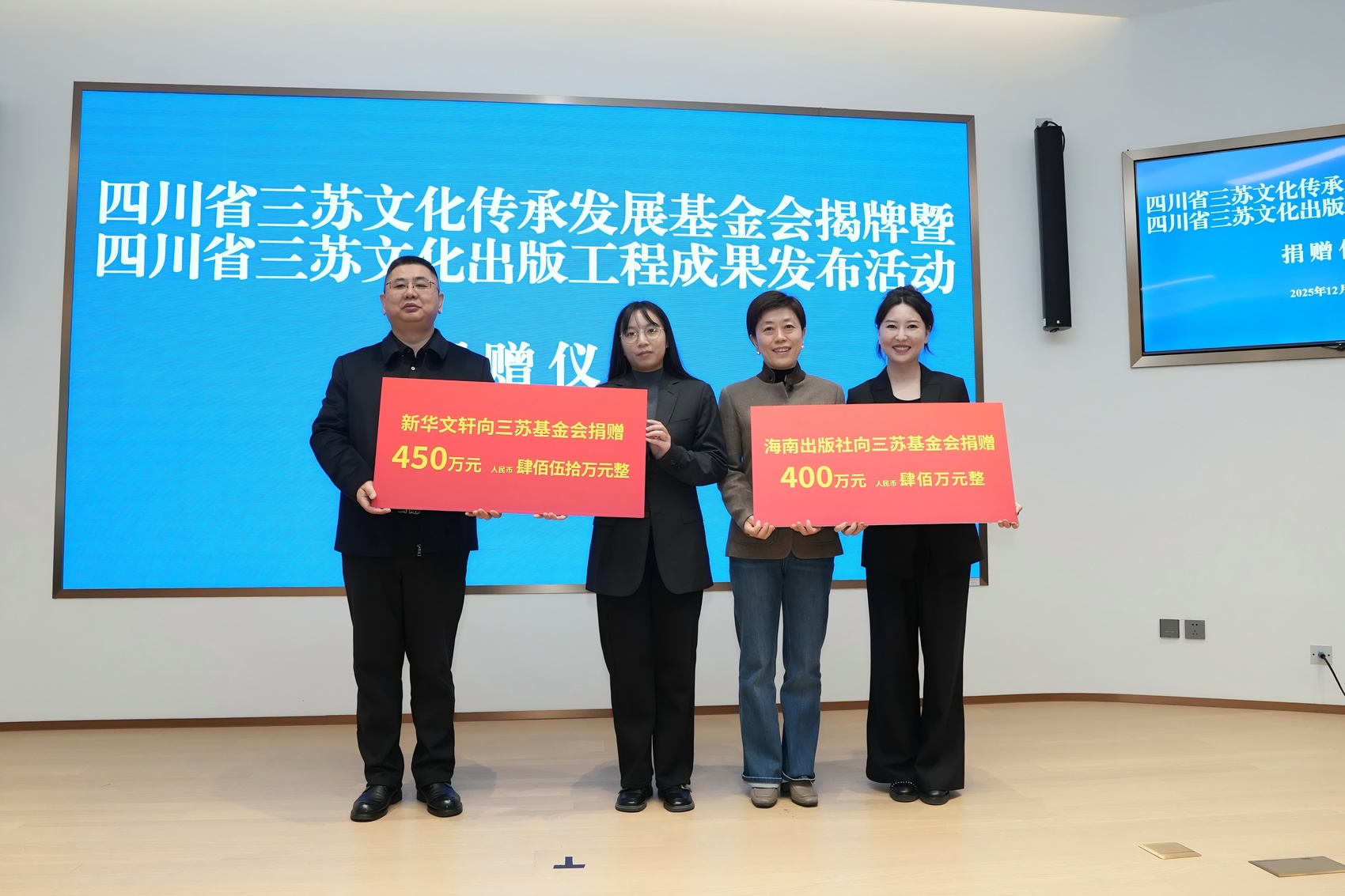 活动上,海南出版社、新华文轩分别向基金会捐赠400万元、450万元,用于支持三苏文化传承发展。“四川是三苏文化的根脉所系,海南是东坡先生晚年寓居之地,‘我本儋耳人,寄生西蜀州’道出了川琼两地跨越千年的文化亲缘。”海南省出版发行集团党委委员、副总经理古莉表示,此次捐赠是深化川琼文化合作、共担三苏文化传承使命的生动实践。