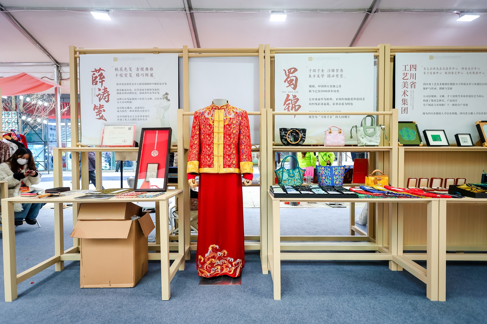 其中主题展览将持续5天,汇聚了来自成都、绵阳、凉山、阿坝等地近40家企业的1000余款产品,打造了一个可观看、可体验、可交易的沉浸式空间。同时还展示了四川大学、四川师范大学、成都工业学院、成都纺织高等专科学校等高校的创新作品,充分展示了传统技艺融入当代生活的无限可能。