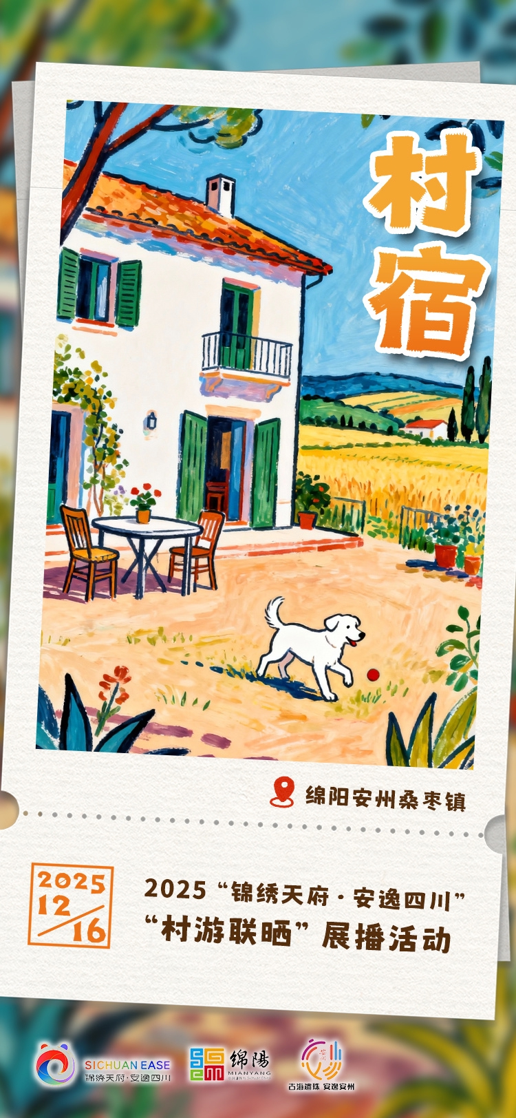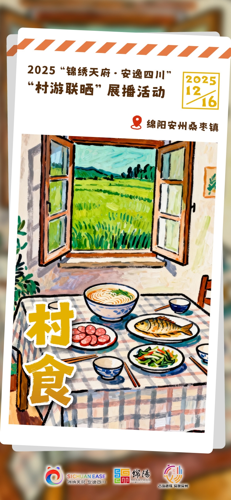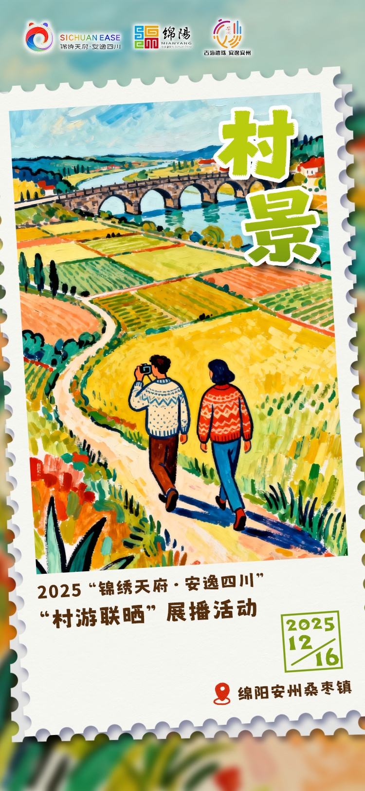 一川锦绣色,满村安逸风。发现更多四川宝藏乡村,12月16日,我们在绵阳安州区桑枣镇,与你共启火热2025“锦绣天府·安逸四川”——“村游联晒”展播活动。