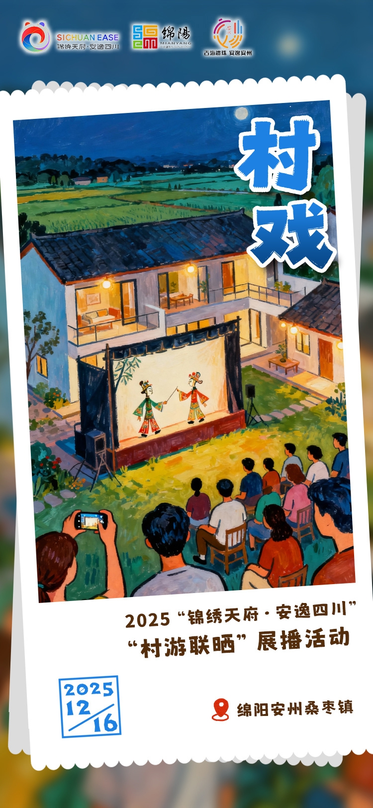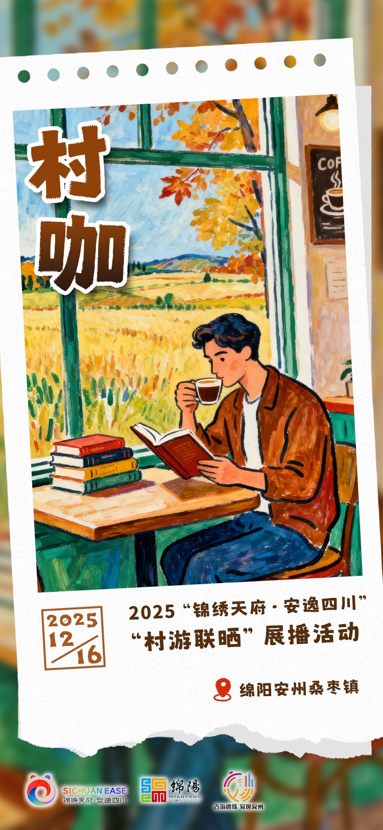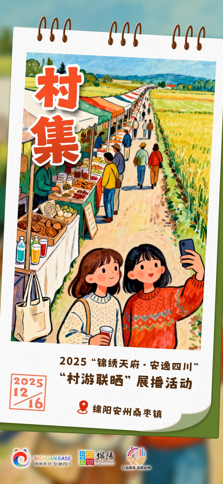 一川锦绣色,满村安逸风。发现更多四川宝藏乡村,12月16日,我们在绵阳安州区桑枣镇,与你共启火热2025“锦绣天府·安逸四川”——“村游联晒”展播活动。
