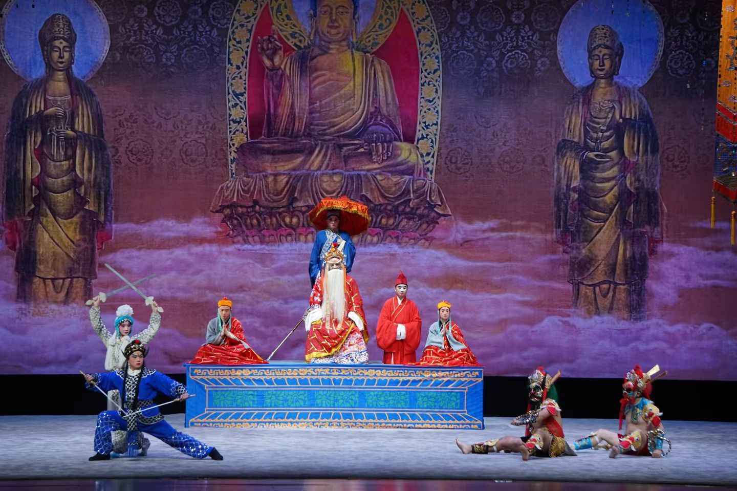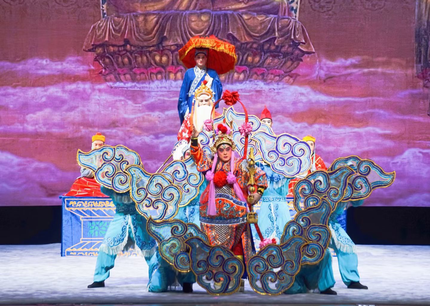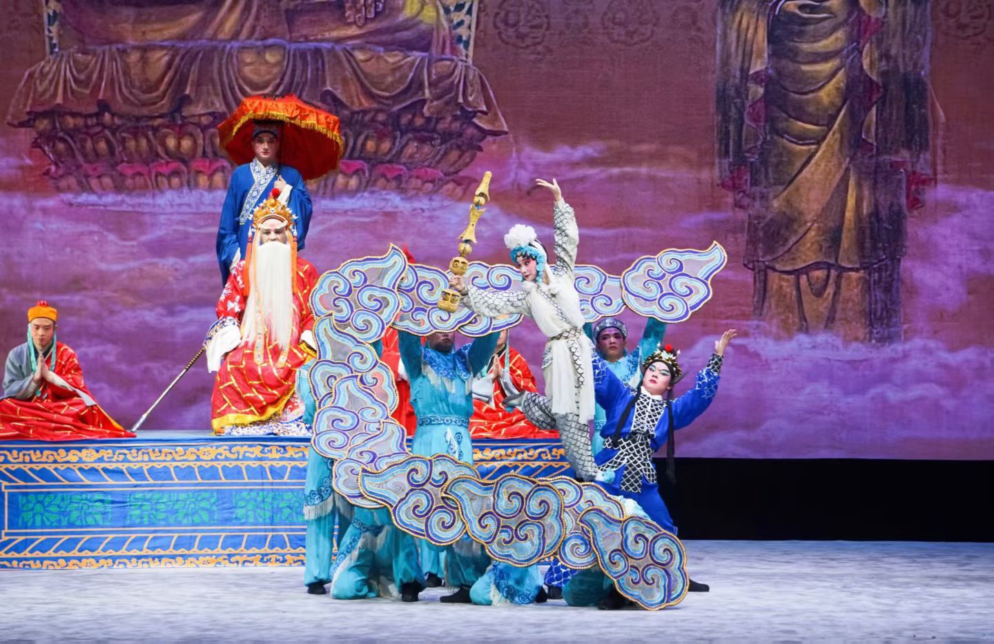 水漫金山一幕,更是以奇幻视觉与层出绝技构建高潮。尤具匠心的是法器紫金铙钵的拟人化演绎:通过变脸技艺,铙钵不再仅是道具,而成为意志的延伸、法力的化身,在脸色瞬变间折射斗法的凶险与情绪的激荡。