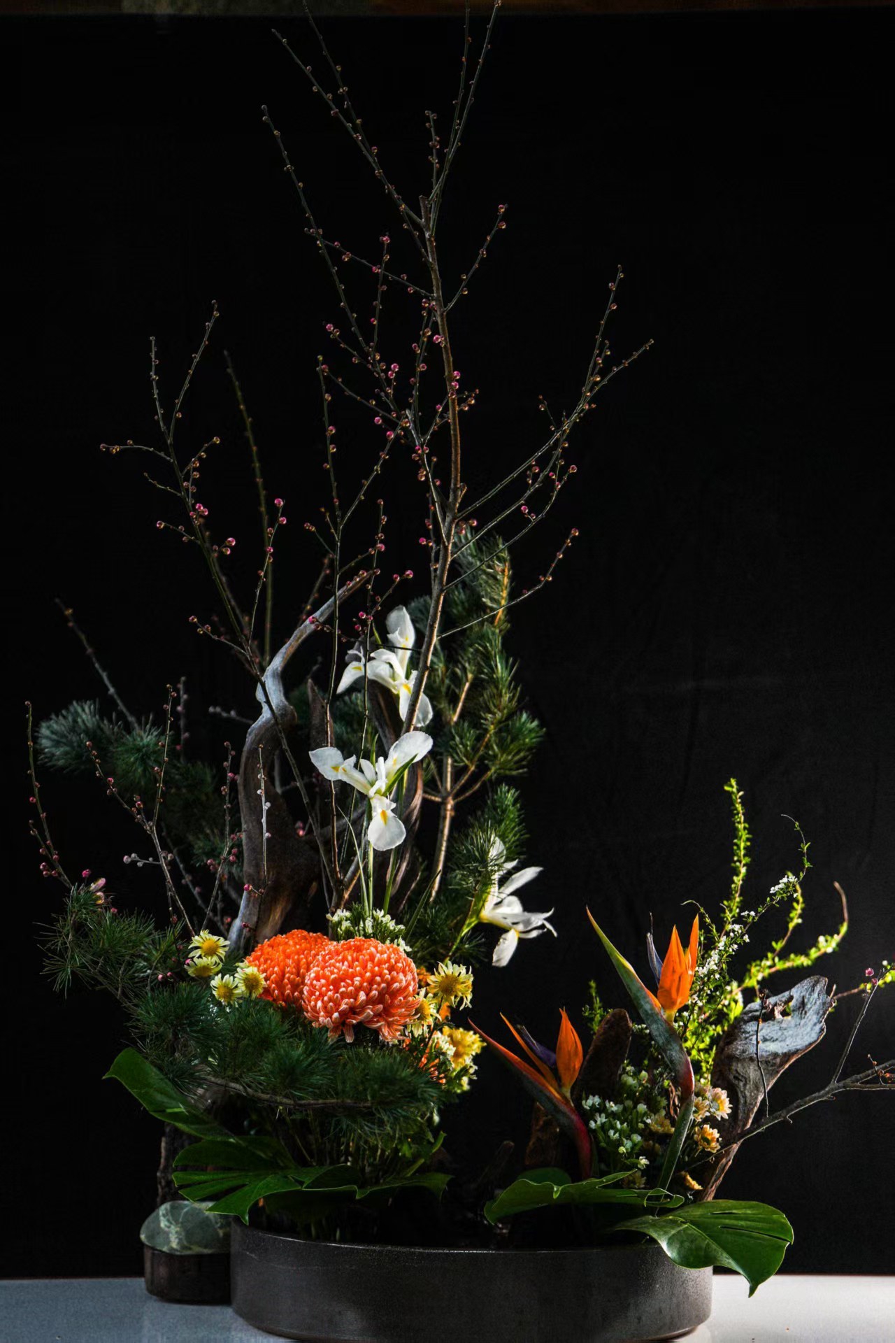 记者在现场看到,创作者们巧用松、竹、梅、菊、兰等传统花材,搭配枯木、苔石、古器等元素,于方寸之间勾勒天地意境,于枝叶之间传递人文温度。既有遵循传统技法的经典之作,展现中国式插花的程式之美;也有跨界融合的创新作品,将空间美学、数字技术与传统花艺相结合,为古老艺术注入时代活力。