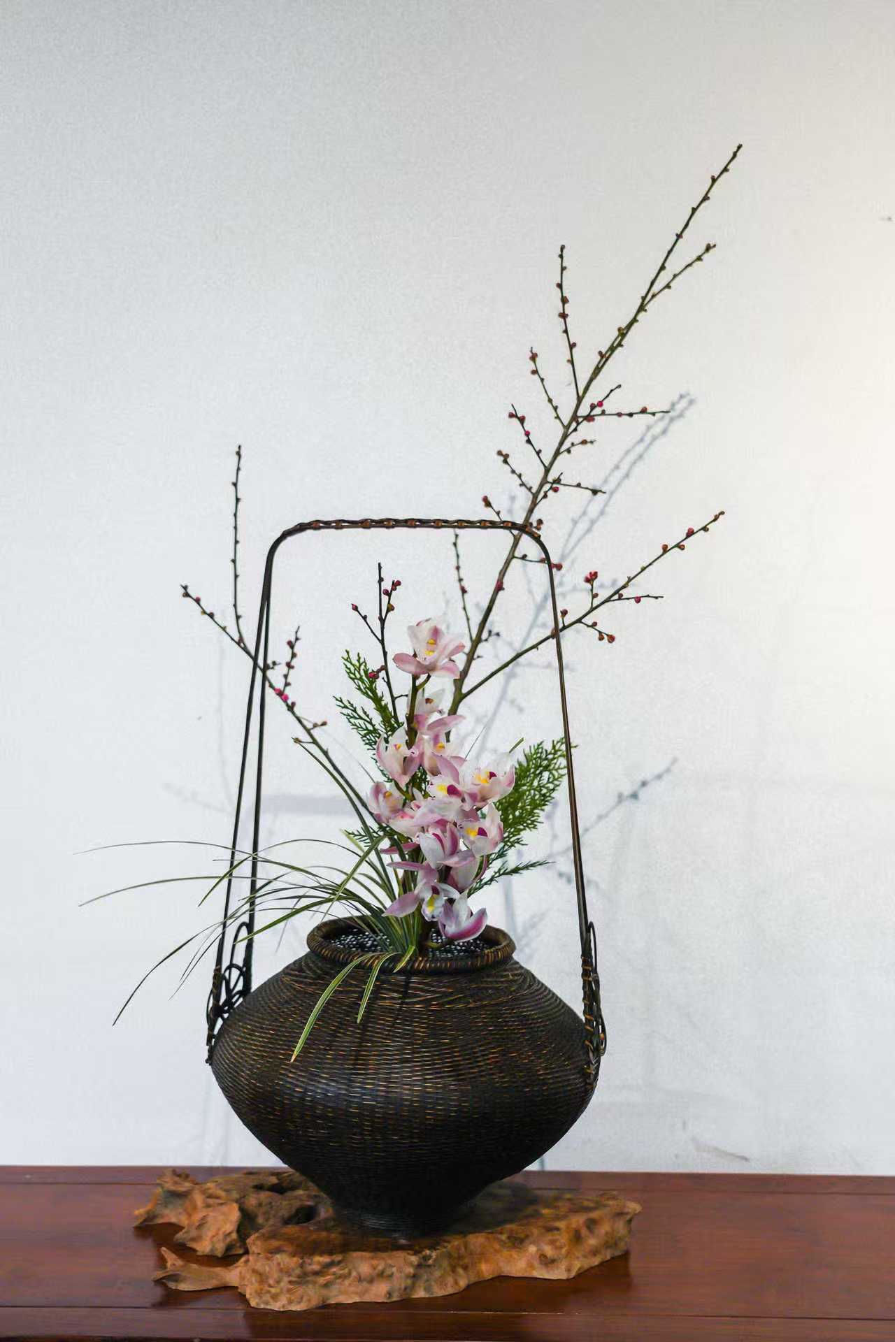 作为川内首次聚焦中国式插花的专业展会,展览汇聚了省内外众多插花艺术名家、青年花艺师50余件精品力作,同时展出了来自成都幸福梅林的古桩蜡梅盆景精品。参展创作者不乏一级插花花艺师、中华花艺教授、传统插花技艺非遗代表性传承人等。他们的创作灵感均源自杜甫经典诗篇,从“金盘玉碗无颜色,只有清香似旧风”的清雅意境,到“新松恨不高千尺,恶竹应须斩万竿”的刚健风骨;从“繁枝容易纷纷落,嫩蕊商量细细开”的惜时之思,到“会当凌绝顶,一览众山小”的豪迈情怀;从“幸不折来伤岁暮,若为看去乱乡愁”的思乡之情,到“晓看红湿处,花重锦官城”的美好愿景,每一件作品都以花为笔、以梅为韵、以诗为魂,通过精巧的构图与灵动的蜡梅、南天竹等时令传统花材搭配,将杜甫的诗歌之美转化为可观可感可触的视觉艺术。