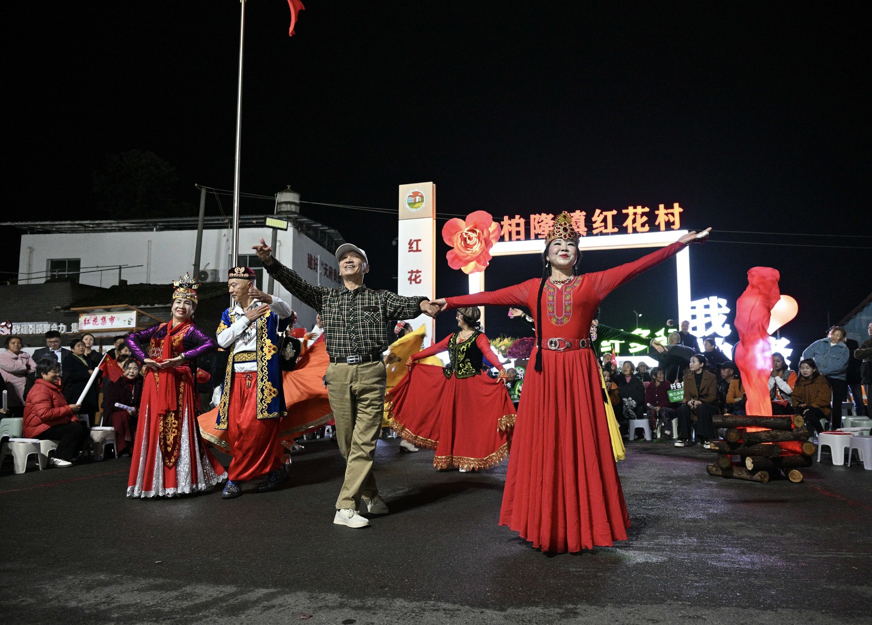 德阳市旌阳区柏隆镇红花村“村晚”现场。肖雨扬 摄