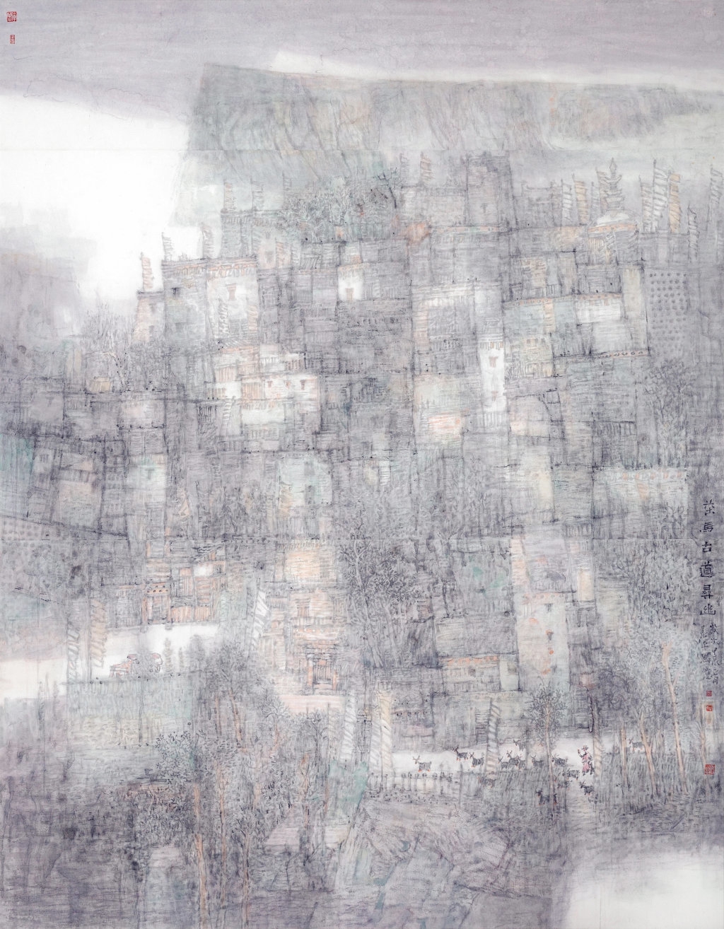 茶马古道寻幽(中国画),尺寸:230cm×180cm,李兰平 作