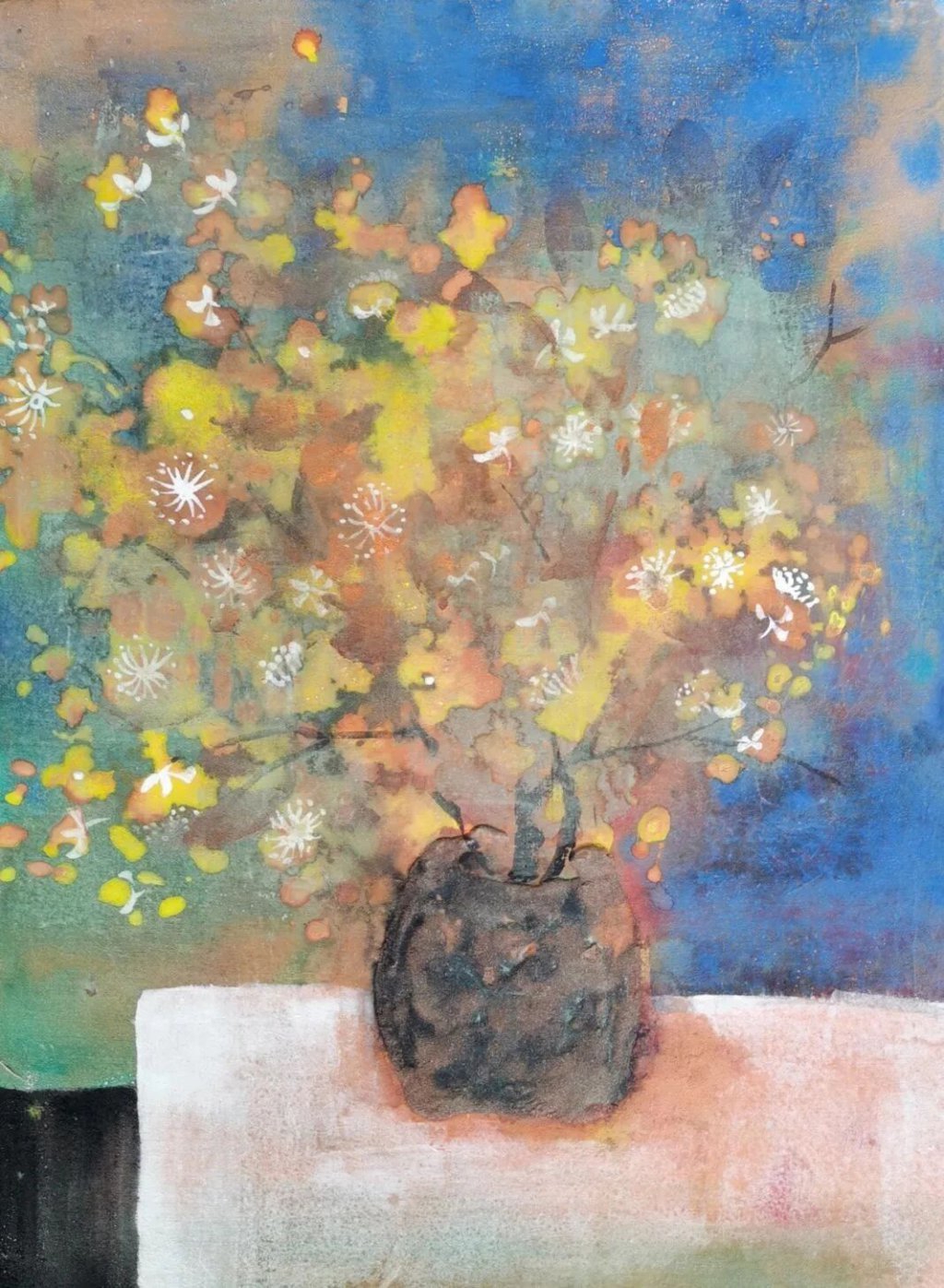 静物一(岩彩画),尺寸:60cm×45cm,尉志坚 作