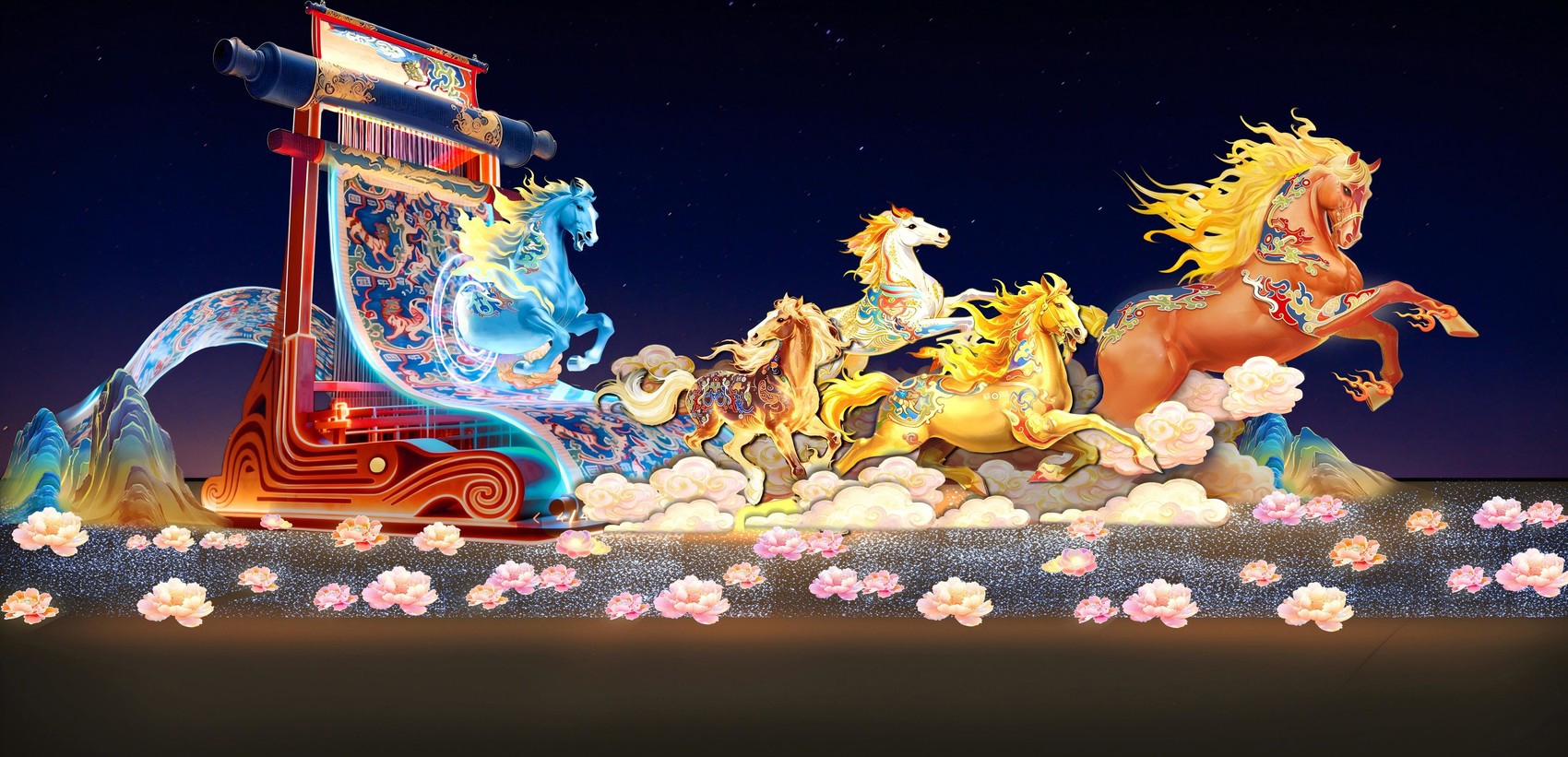 本届灯会有何亮点?记者了解到,将呈现40余组彩灯,其中4组为12米及以上的超大型灯组,通过动态机械与声光电等技术应用,营造沉浸式视听效果,例如创意源自“五星出东方”蜀锦护膊的《神骏出东方》马年主题灯组、反映蜀道文化的《五丁开蜀道》灯组、创新表达三国文化的《人也,神也,仙也》灯组、植根成都本地唐宋商业文明的《十二月市生肖闹》灯组、刻画成都历史文化地标的《成都锦绣》灯组以及展现龙泉驿驿马文化、客家文化和桃花文化的《茶马远行织锦绣》《牧童遥指客家村》《人面桃花相映红》灯组等,让文化味交织科技感。同时,由上海电影集团旗下“上影元”授权的两大经典IP——《大闹天宫》与《熊猫百货商店》,也将亮相灯会,唤醒童趣记忆。