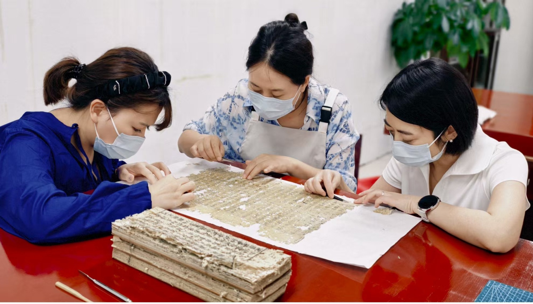 潮州开元寺同样珍藏着珍贵的佛教大藏经,为期二十余天的研修时光,让三位修复师得以系统研习大型藏经的修复理念、流程规范与特殊技艺。“最大的收获是开阔了专业眼界,也验证了我们此前的部分修复思路。” 罗涵亓深有感触地说,“比如针对严重虫蛀古籍的修复,授课老师们也强调不能墨守成规,要根据典籍实际情况综合运用多种方法,古籍修复从没有所谓的‘一招鲜’。” 带着满满的专业感悟与前沿新知回到成都,修复团队马不停蹄投入到后续环节的打磨完善中,力求每一处细节都严谨规范,经得起时间与历史的检验。