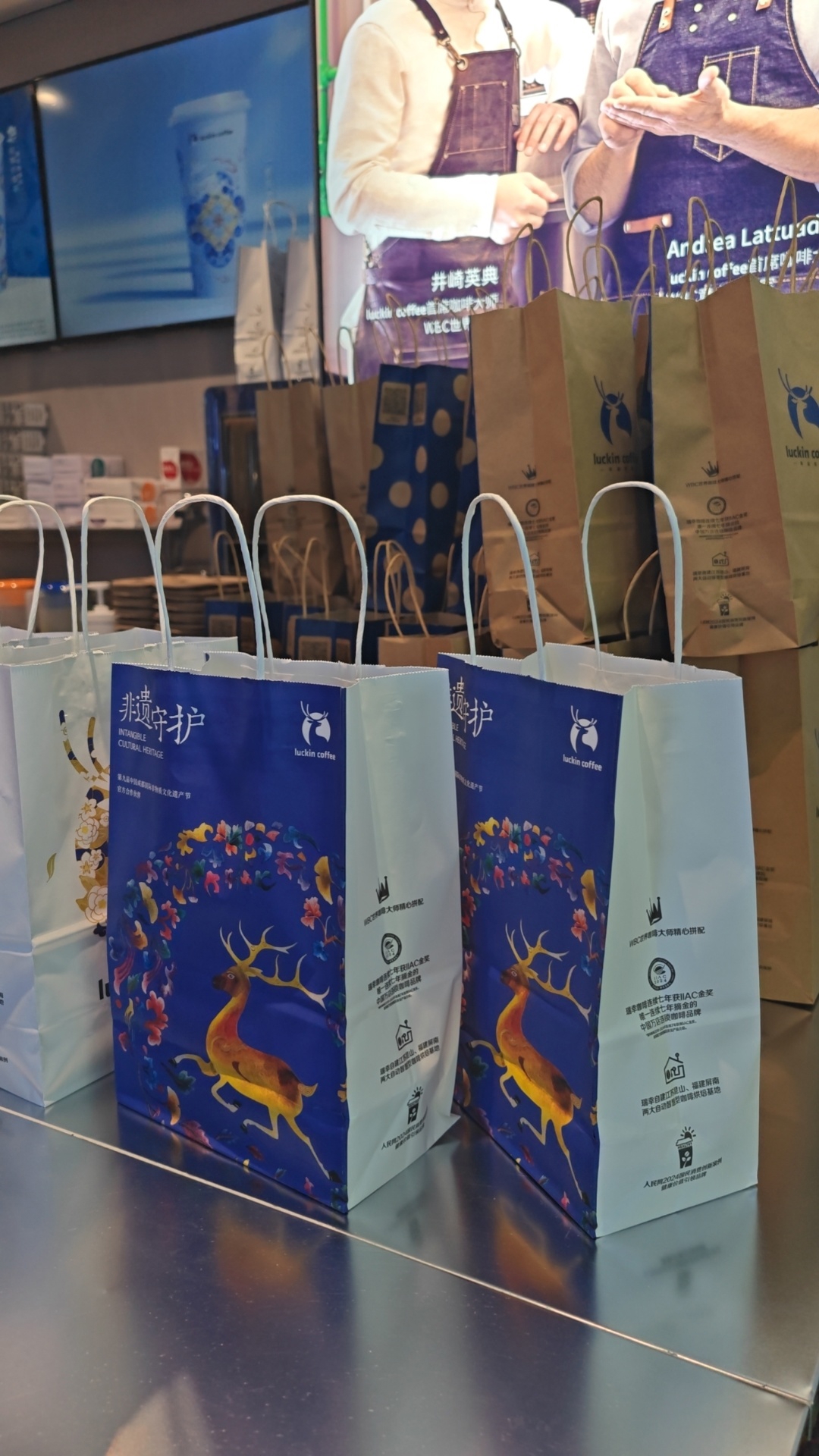 杨华珍为瑞幸咖啡设计的羌绣版LOGO