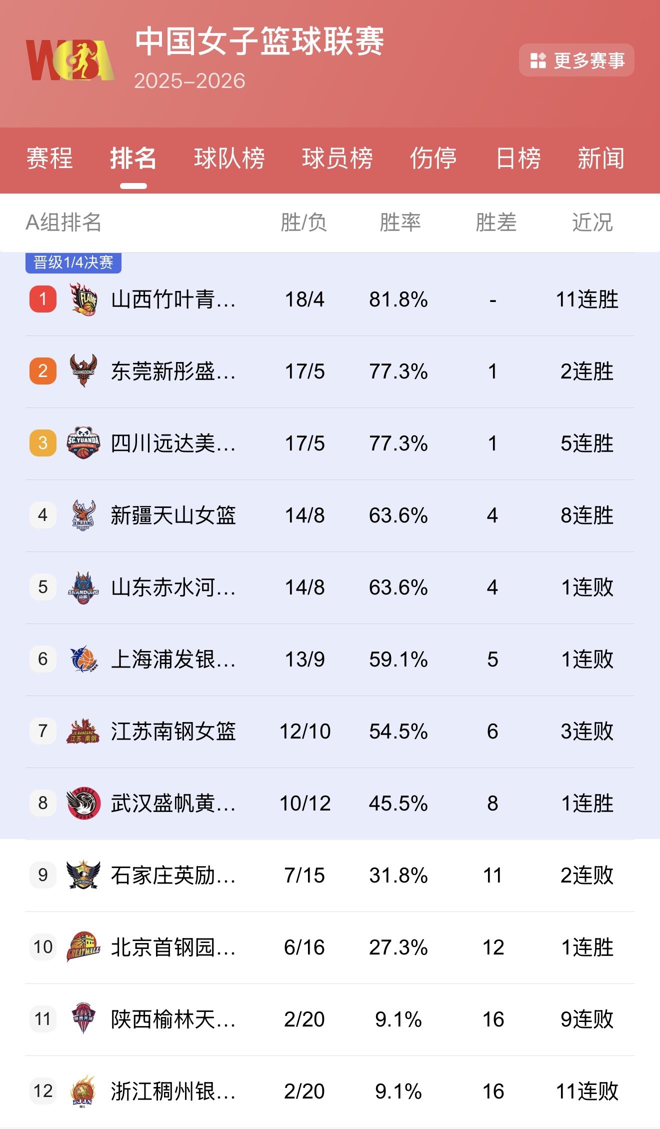 从积分榜看,山西女篮一路领跑锁定头名,东莞女篮紧随其后稳居次席,四川女篮与山东女篮则分列三、四位。由于山东女篮在常规赛胜场数上落后四川女篮两场,本场对决的结果不会改变四川女篮的最终排名。