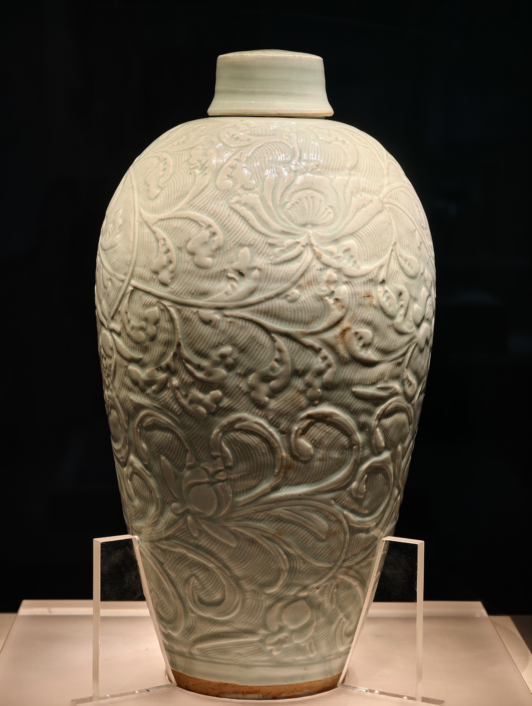 景德镇窑青白釉缠枝花卉纹带盖瓷梅瓶 南宋 遂宁市博物馆藏