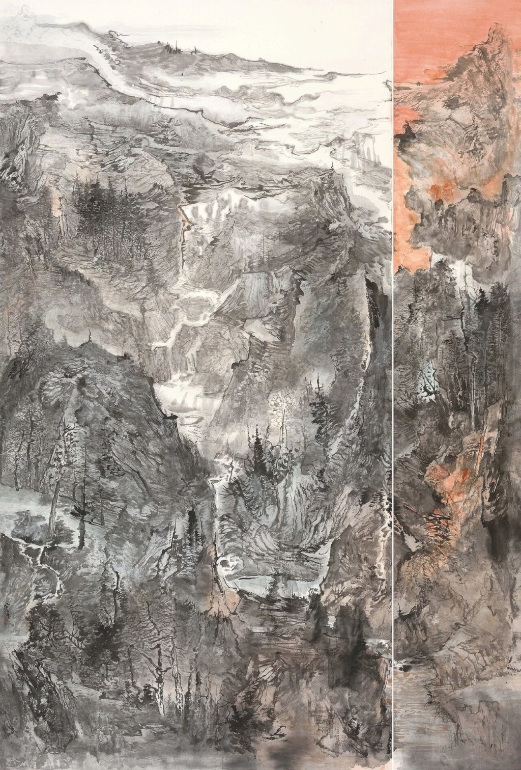 大凡以气韵取胜的山水画,笔墨气势均粗犷豪放。四川画家范宇清的作品,一方面布局、构图雄浑大气,另一方面笔墨又不失精致细腻,恰好构成一种相反相成的艺术效果,形成艺术家独具个性的绘画特色。在她笔下,西南山川草木特有的清幽气质,融进北国地理人文壮阔的精神场阈中,细细品读,作品画面似乎充满了延伸感、扩张性和膨胀感。“笔墨铸山魂,情韵写大川”,正如评论家所言,范宇清的山水既是观者可以感悟到、体验到的熟悉、亲切的“眼中山水”,又是极具个人表达的精神性、意象性的“胸中山水”,是作者主观情感与自然山水融合渗透的外化呈现。